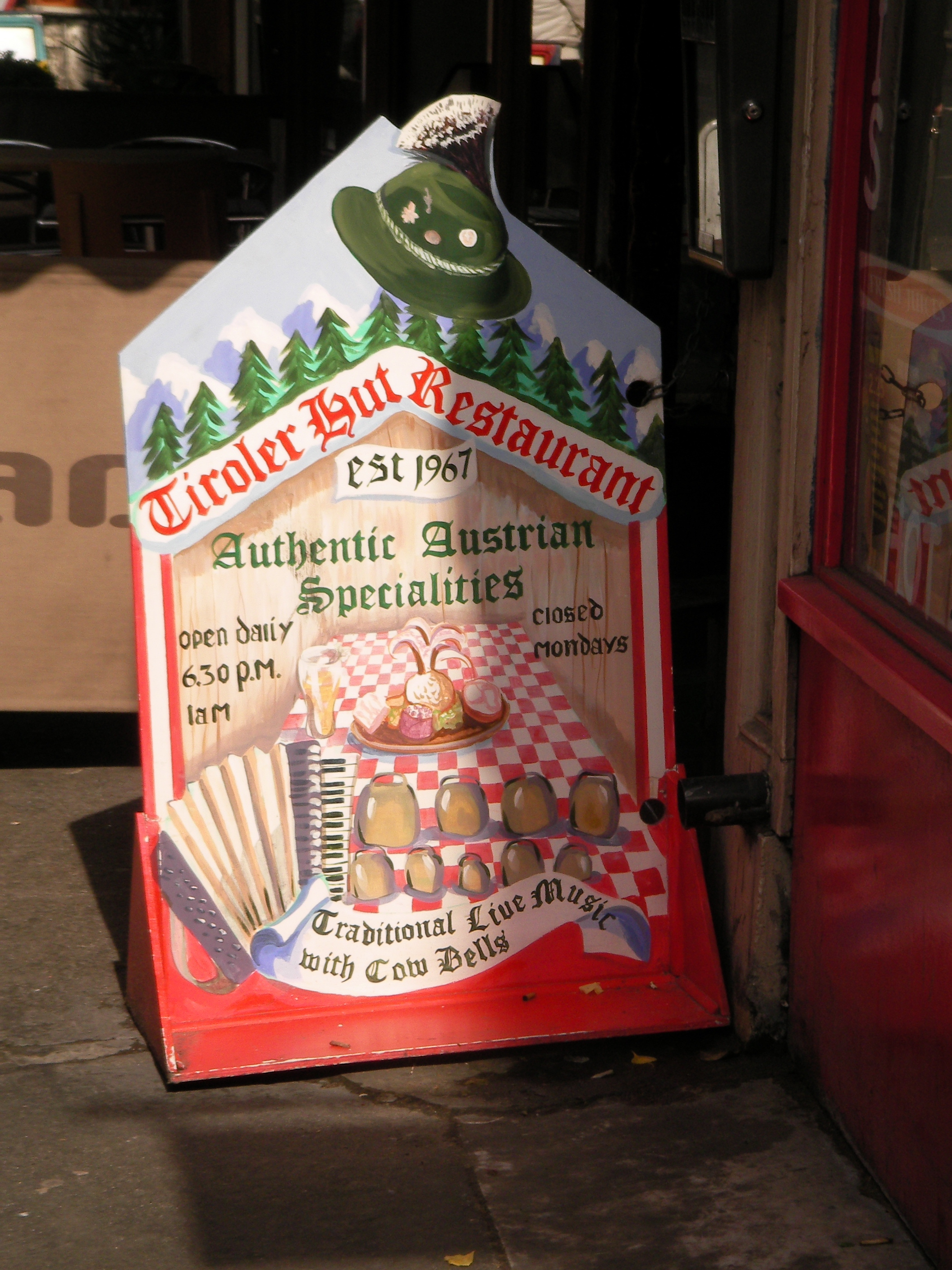 This is where we are going for the Christmas work party. I have no love for the Tiroler Hut and the leiderhosen-clad waiting staff and that man who insists on the cowbell-playing at full volume mid-meal. Deep, deep, heartfelt sigh.