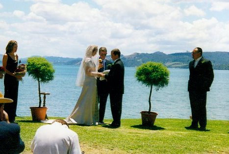 So, 12 years ago we got married on the beachfront at One Tree Point, Ruakaka, New Zealand. It was hot, Mark got a burnt and blistered forehead, I wore an oyster and gold dress (still quite stylish, thank you very much – although it no longer does up – SIGH), we had excellent roasted ham (the subject of which unfortunately became the subject of my wedding speech – one of many wedding speeches made by me that are best left forgotten), someone forgot to bring the hired glasses for drinks, the band were a little weak, the wine was bad choice but luckily most of the guests didn’t drink so no one noticed, and the makeup artist forgot to turn up. The Lowest Point Of All was going back to the hall where we held the reception in order to retrieve my makeup box, and finding my parents cleaning up the hall by themselves. So we helped them, sweeping and wiping and packing up chairs – all in our wedding finery and until midnightish. Not an ideal end to the wedding, perhaps.