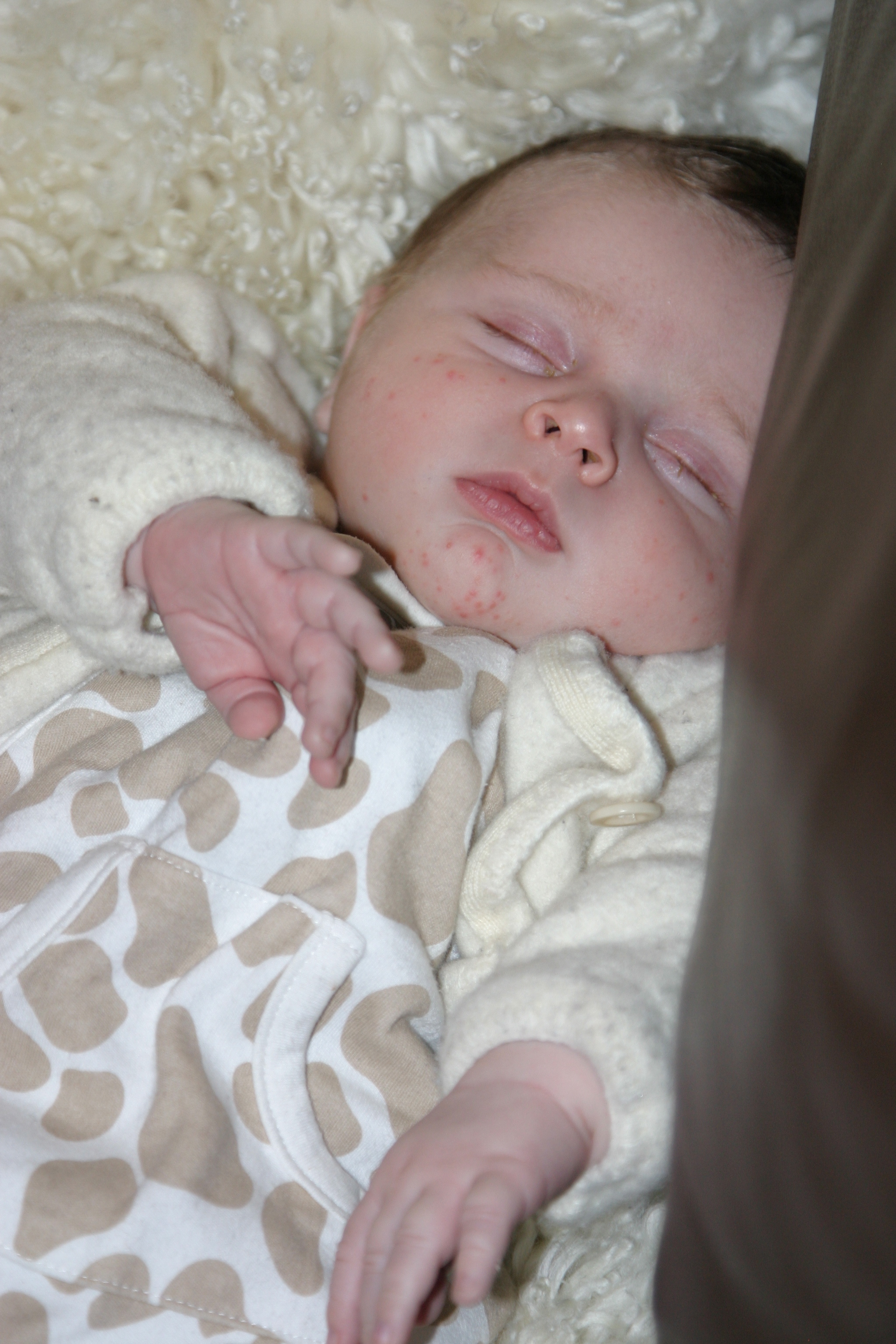 Anyhoo, it is bedtime. Here is a picture of Ned at 5 weeks old. He is 7 weeks old now, and is perhaps the most lovely spotty baby is the world. He doesn’t bite me, in any case.
