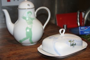 That *was* my new butter dish, except one of those pesky kids broke it. They are ugly ceramics with people in leotards doing jazzercise printed on them. Excellent. The DVD player is also broken, because Noah put a pen inside it. And I am waiting for my Alexa strap to be ruined, because Barnaby is obsessed with wearing it as a belt. He loops it to his trousers, then uses the hook to attach himself to trees/bunks/car doors, etc. Why do I let him, I hear you exclaim in a worried, perplexed tone (especially those who googled what the bag actually cost). Frankly, sometimes you take the path of least resistance. That is the only answer I have got.