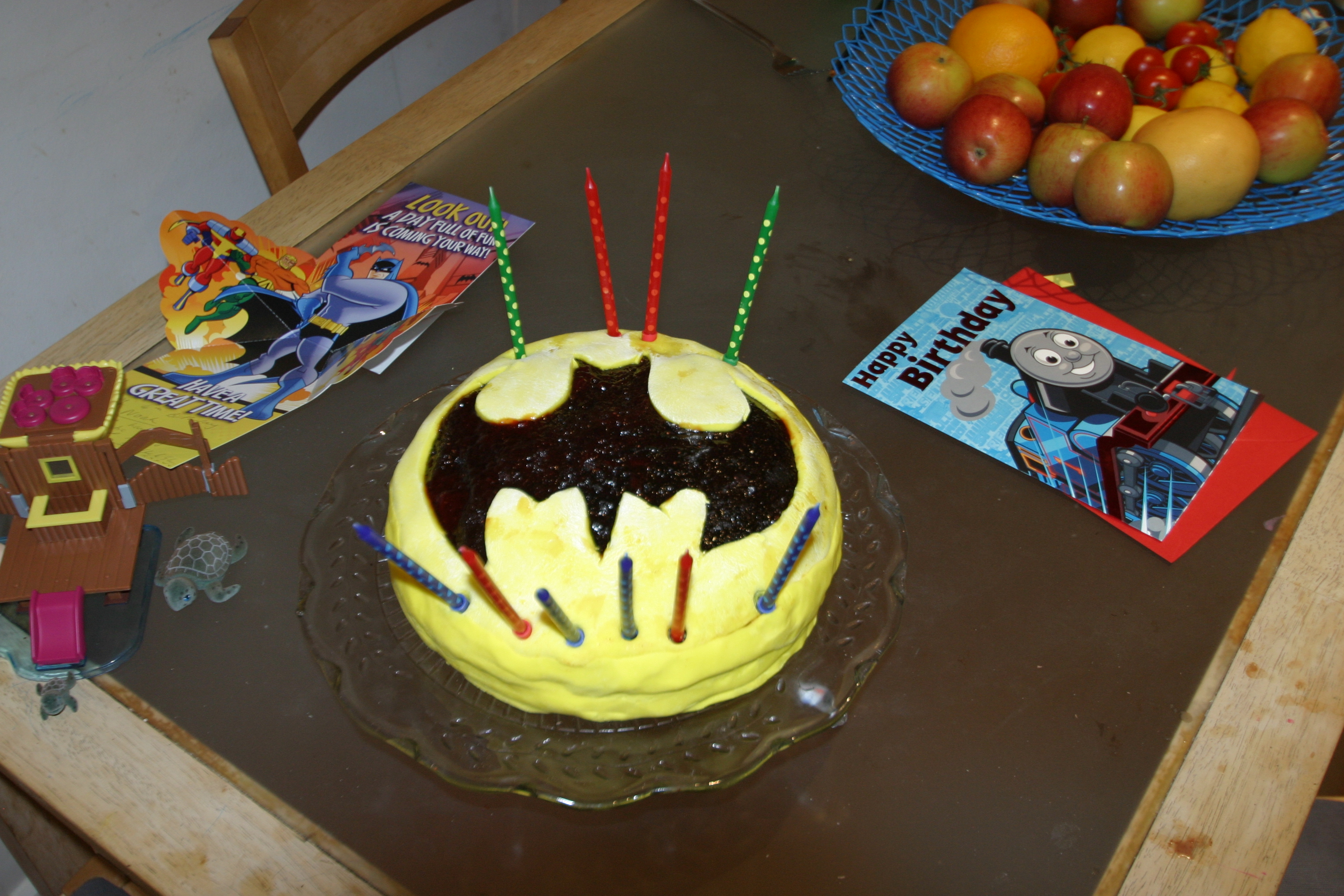 So, Noah turned four yesterday and I made a cake. He has asked for a Batman cake for months and months and so I mustered up my cakery skills and made this. And I am peeved. Because: