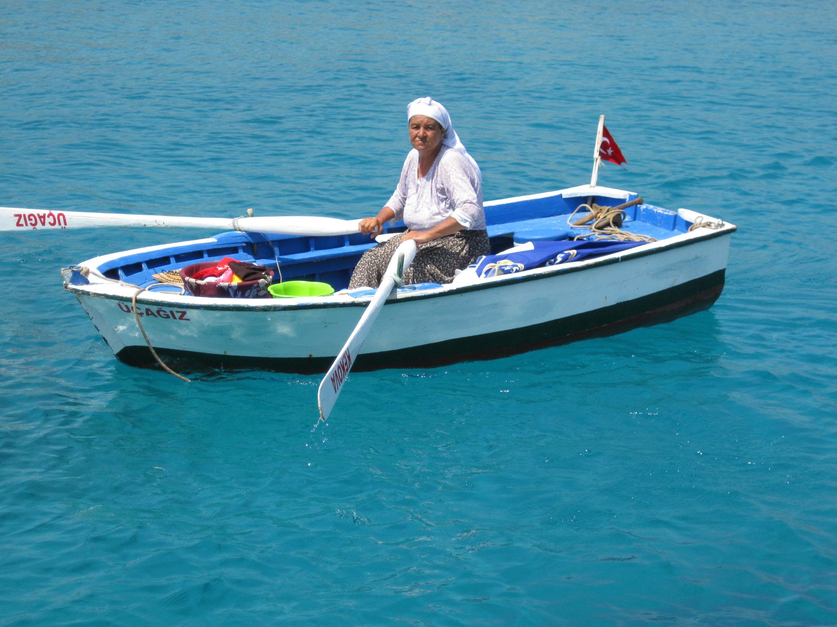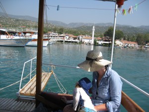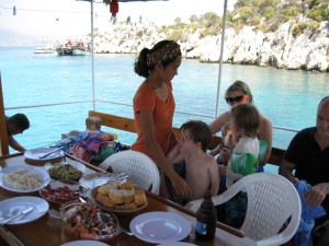 We went on a boat trip. Note that I am not the young, beautiful Turkish girl in the photo. I am the one with plastered-down hair and ill-advised beachwear. I may not have read the magazines quite as well as I’d thought. I swear the section on “Beachwear For Pear-Shapes” was supposed to Minimise My Problem Area. It seems to have done nothing of the sort. Ah well.