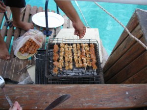 Chicken kebabs cooked for us on the boat by the jolly captain. Perfectly cooked, according to my father. Phew.
