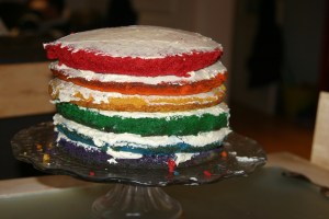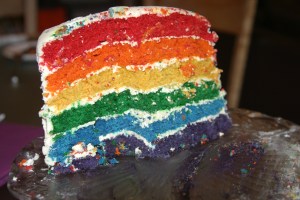 I don’t think it can be the food colouring that’s done for you all, there are some hideous sickness and the other thing that I never spell correctly on the go just now. Perhaps it’s more likely to be one of them rather than your inspired rainbow cake?