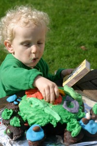 We did have green icing though. I hope your kids enjoyed it. Best time for cake is just before and after it’sbeen made.