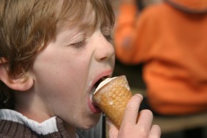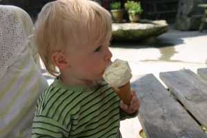 1. The ice cream is all very worthy and creamy and traceable (i.e. the eggs came from that farm and the milk from that herd in that paddock over there, etc etc). The children loved it, as these helpfully placed photo shows: