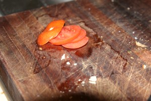 My Archilles Heel – bits of wet, weepy tomatoes left on the bench, every day of my married life. If I ever divorce, it will be because of the tomatoes.