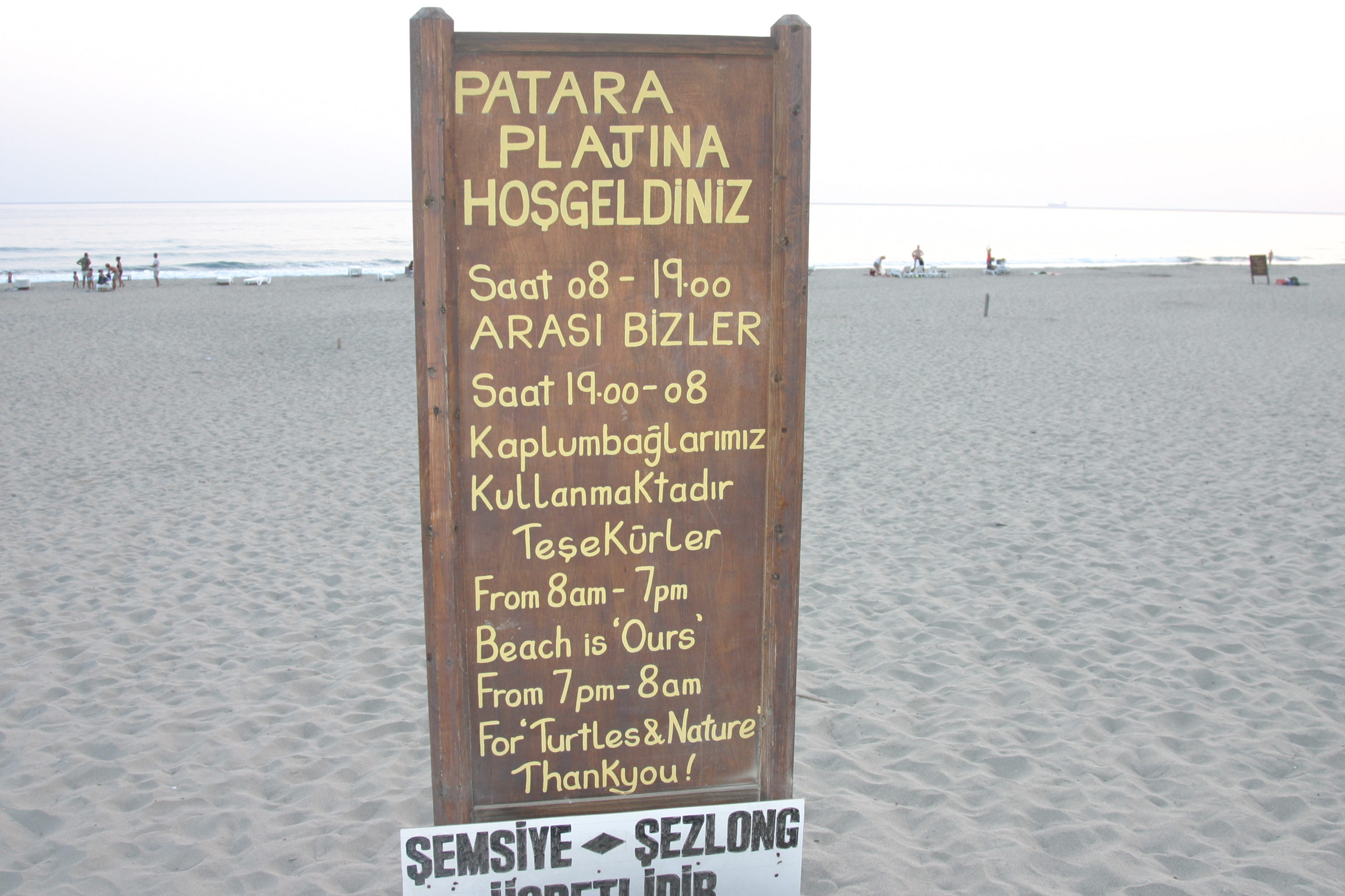 They lay eggs, which is a bit interesting. And they give birth on the beach in Thailand, I think. And actually, in Turkey too – see below for polite “Turtle and Nature” poster from Patara Beach, Kas Peninsula: