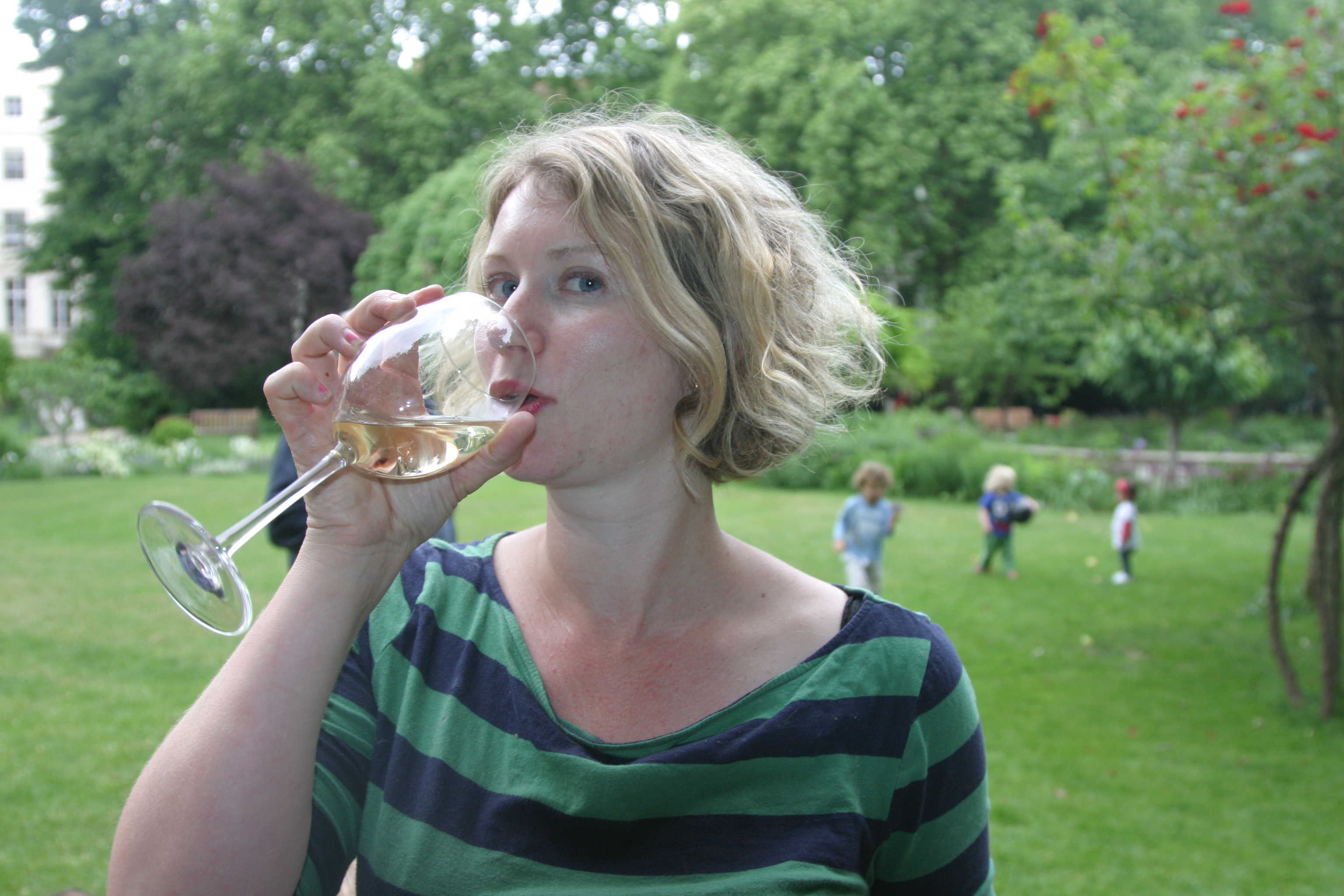 And me, fond of a drink in the afternoon: (note wildly asymmetric hair billowing like a lampshade AGAIN)