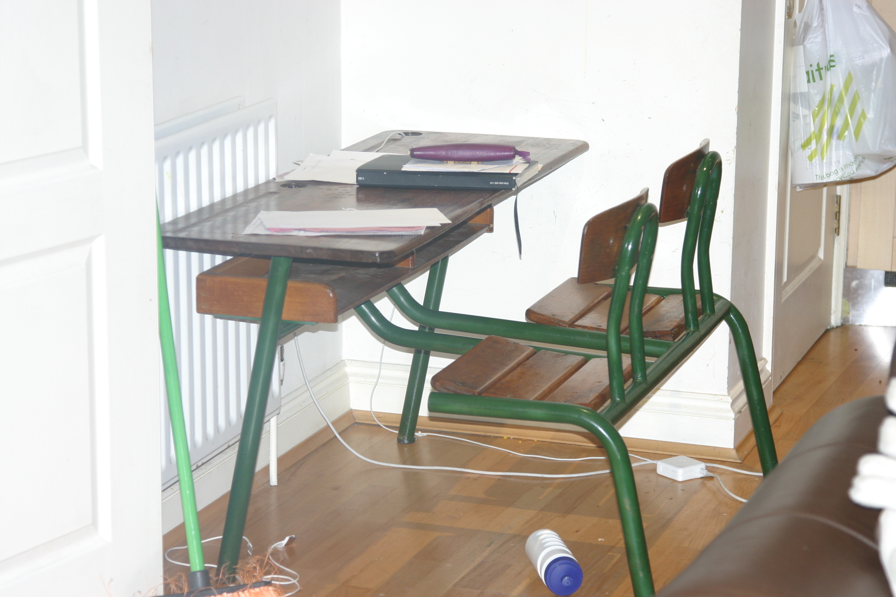 And the french primary school desk which cost £41 to buy, and £65 for postage. Post-war industrial chic-tastic they may well be, but they fit no one with a bum bigger than an 8 year old boy: