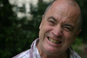 Am sure husband is gurning in such an alarming manner owning to d). But you never know. I am oft to be found performing c), though not usually in our communal gardens.