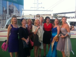 I became sickeningly aware, within minutes of exiting the hotel room and lining up with all of the others waiting for the minicab to take us to the ferry, that I looked completely WRONG. The Youth all understood that they were to look sharp and eveningy and all work cocktail frocks and the men were in stylish suits. The women had their hair all proper and they had high heels and shawls and they had evening bags and they glistened with RIGHTNESS. I was wearing a crepey tea dress that was a bit 40’s and not at all evening and then I forgot my McQueen blazer in which to add a stylish punch and had very little makeup and NO HAIR PRODUCTS and only that morning we had been to the hammam for thorough naked-lady-cleansing and the enormous-breasted Turkish naked lady in parachute knickers had washed my hair in banana shampoo (no conditioner) which had dried in the taxi-ride-wind home like a crinkly wooly lamb. It was all a bit awful. And my upper arms, which have begun to let themselves go, were a bit white and soft and lumpy. I thought it would be too hot for sleeves. HOW WRONG I WAS.