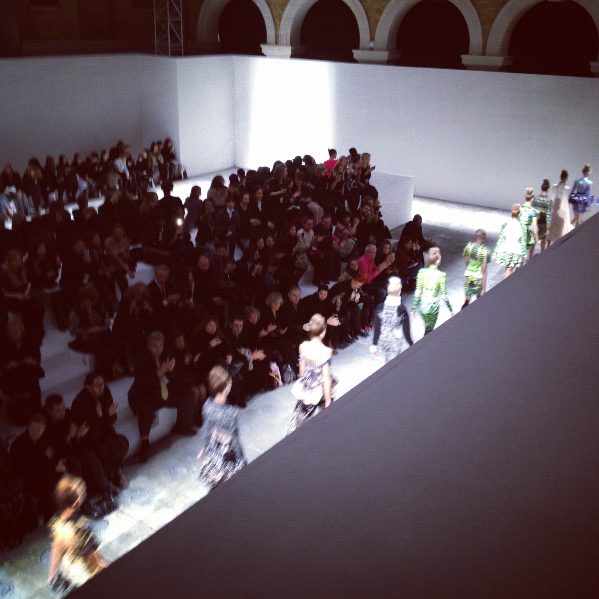 I saw neither Chung nor Wintour, although they were there, according to the Daily Mail. Disappointingly, no one photographed me for their blog full of well-dressed fashiony LFW attendees, either. I expect no one was fooled by my ‘edgy’ look of geometric charity-shop polyester frock, old Kate Sylvester boatneck shirt, rabbit coat and babylissed hair. Ahem. Actually, the women getting photographed were all wearing comedy outfits, on the wrong side of ‘wrong’, with big spectacles and ankle socks and 80’s jumpers. So QUIRKY! so IRONIC! And they were all thin, and probably didn’t have dried weetbix smeared on their cuffs. Thanks, the Unsupportive Kids. So I didn’t feel too slighted. It was actually excellent fun – not exactly to the mudlarking degree of funness, but not very far behind.