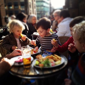 So, it seems that the Thames is the largest archeological site in the world. It is all a bit tricky to get to, though, because the tides come in pretty quick and leave you stranded up against green algaed walls, and the stairs are unnoticeable rickety steep things dotted here and there. It is a bit dirty, although not like it was, so they say, and you really don’t need much more than wellington boots, babywipes, antiseptic gel and a plastic bag. And I SWEAR it is more fun than you would BELIEVE. So much fun that the childcare aspect of an afternoon is largely overlooked, kicked to the curb in favour of deepest concentration, as you scan the shingle and burrow into mud and bend over awkwardly as you attempt to find Victorian buttons and medieval shoes and Roman coins. So the smallest kids do fall over a bit, and they do cry and show you their muddy hands and despair over their wet trousers and try to pull their little legs from the old bits of rotting planks, but you are TRYING to find stuff and really resent having to look up from the rocks and so it is a bit hard to do both. Mudlarking and being a parent – totes incompatible. WHO KNEW?