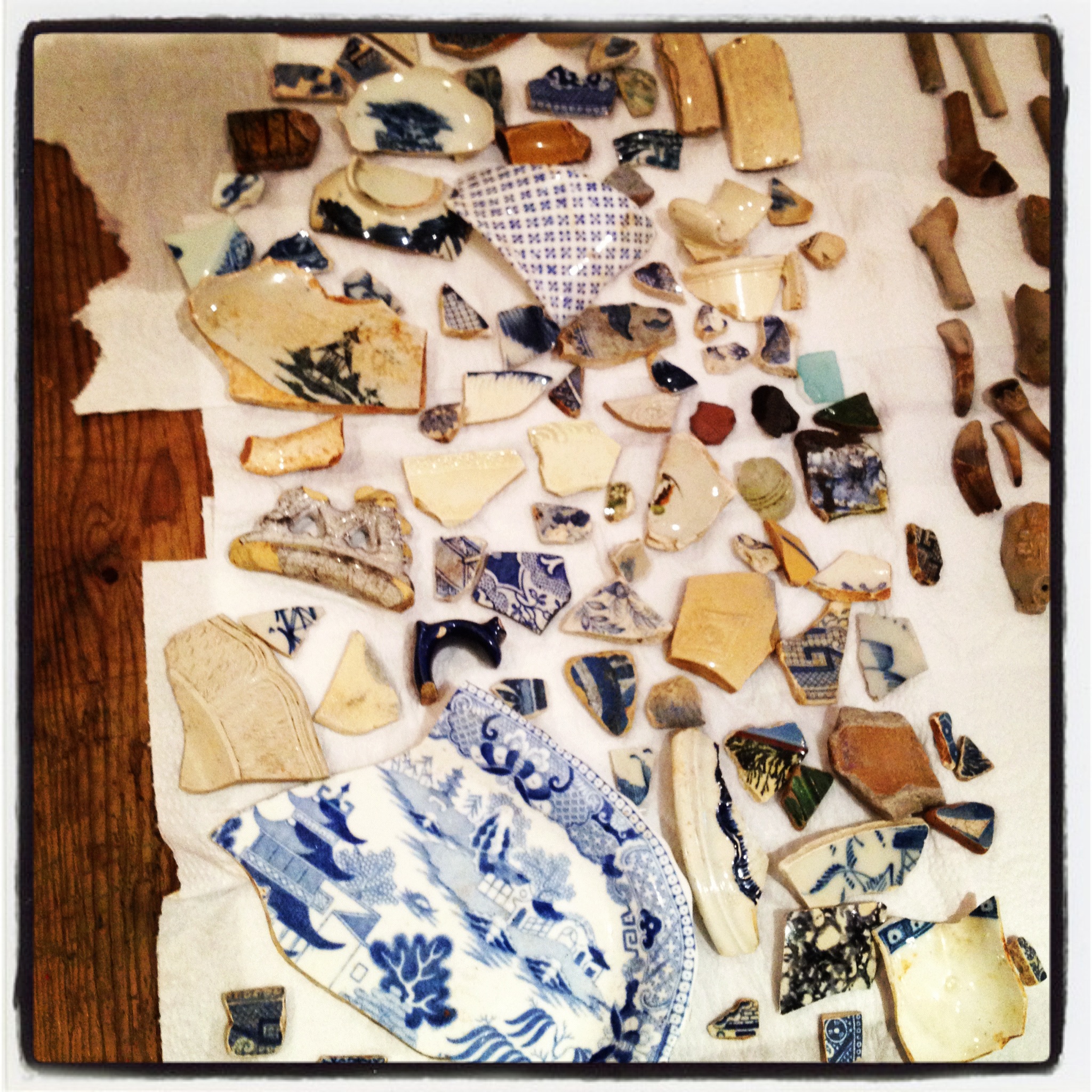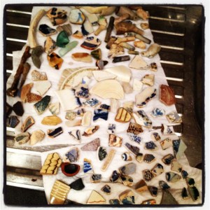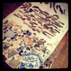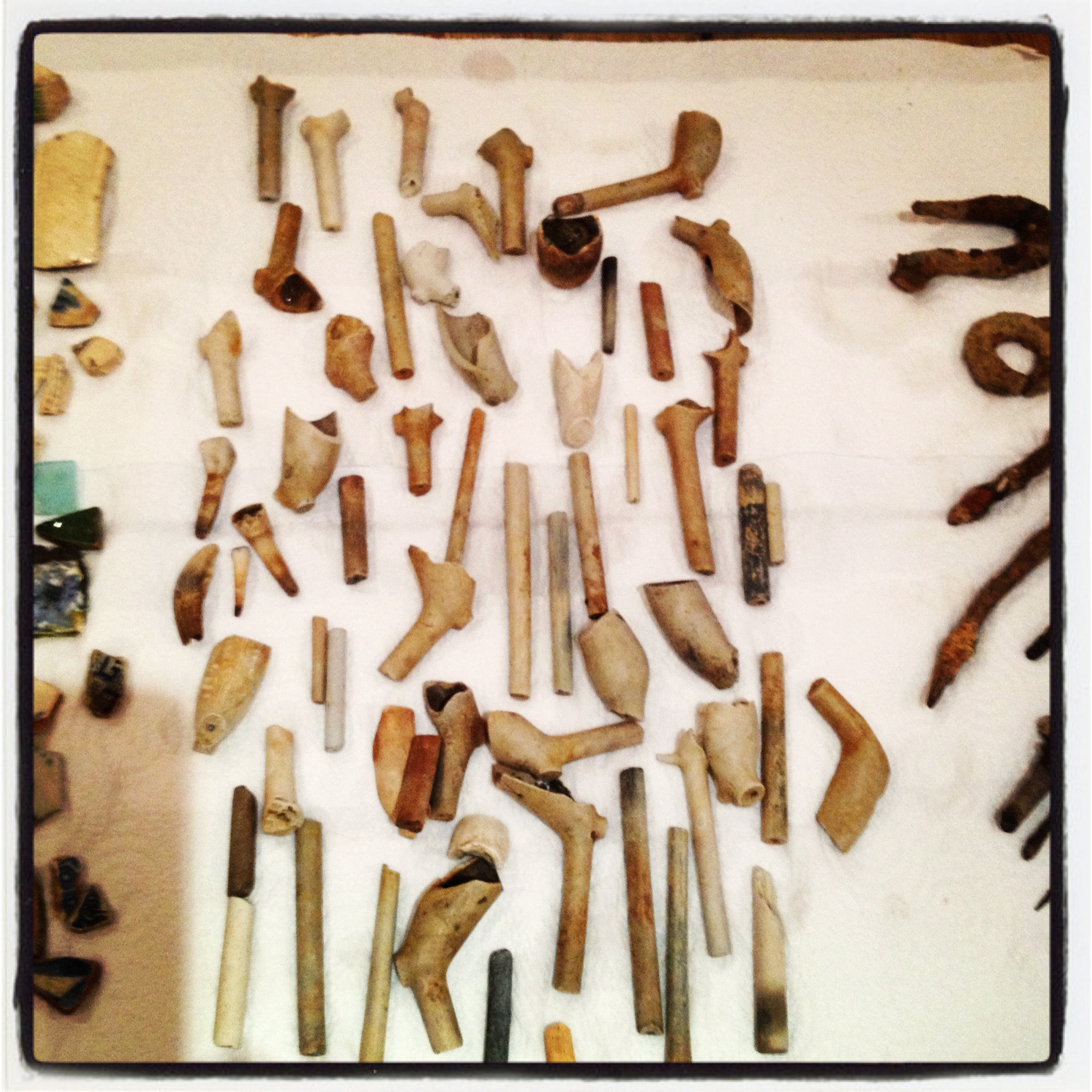 That is a most-excellently-laid-out collection of medieval ship’s nails, old crockery, Roman tiles, and 16th century handmade clay pipes. AMAZE. And a close-up of my treasure: