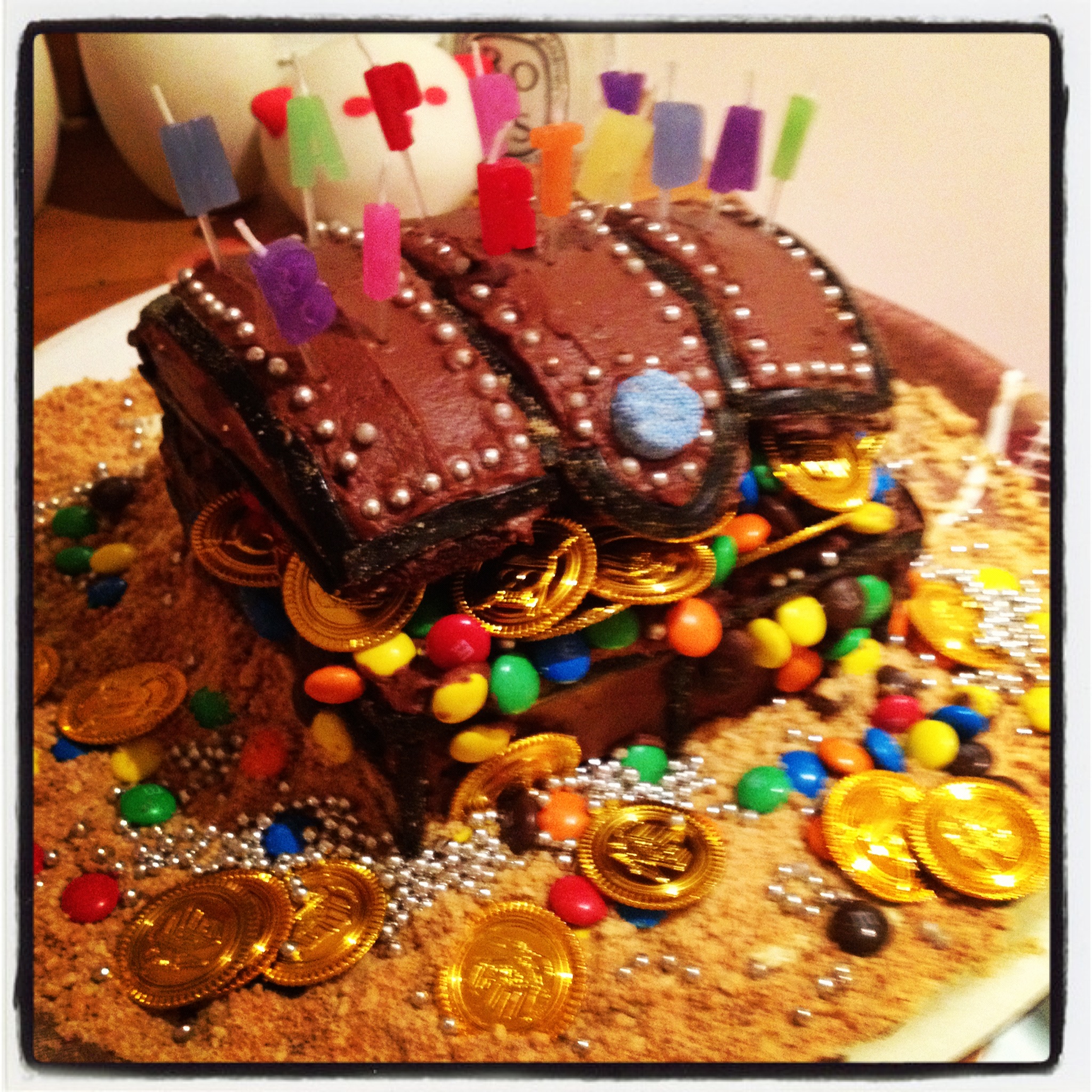 So, housewife I am not, but I did make a good cake for Casper’s 4th birthday. And a watermelon shark fruit salad, ripped from one of those good-looking American blogs where the woman makes placenames for everyone and probably folds her clothes nicely. Ah! The creativity! The craft! Pinterest has a lot to answer for, really – this is the new subjugation – we must excel at cakes and party favours and be skinny and have an excellent job and our children should not hit each other in public. There is something a little odd about my new cake-one-upmanship. But that well be a topic for the therapist. See the treasure chest cake of Instagrammed Geniusness: