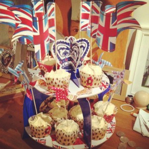 And then we had our own Jubilee party in the garden, which started at 3pm. Which is exactly when it started to rain heavily. These brilliant Jubilee-esque creations soon got wet and ruined: