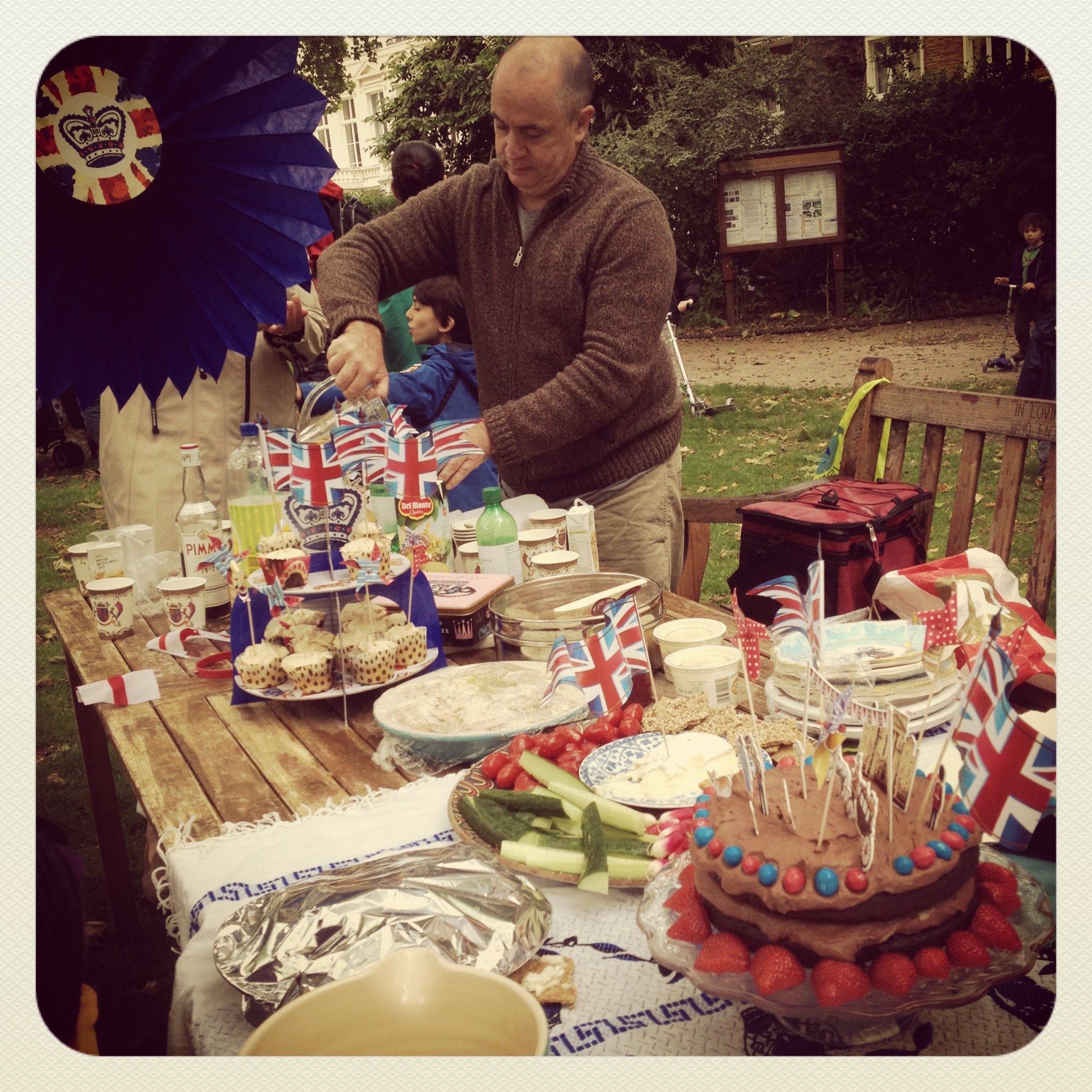 And then we had to give up and head inside, all 30 of us, to our flat, to cut into wet cake and drink rain-splashed Pimms, until we dried out. Happy Jubilee all round. It wasn’t quite the celebration we had hoped for, really.
