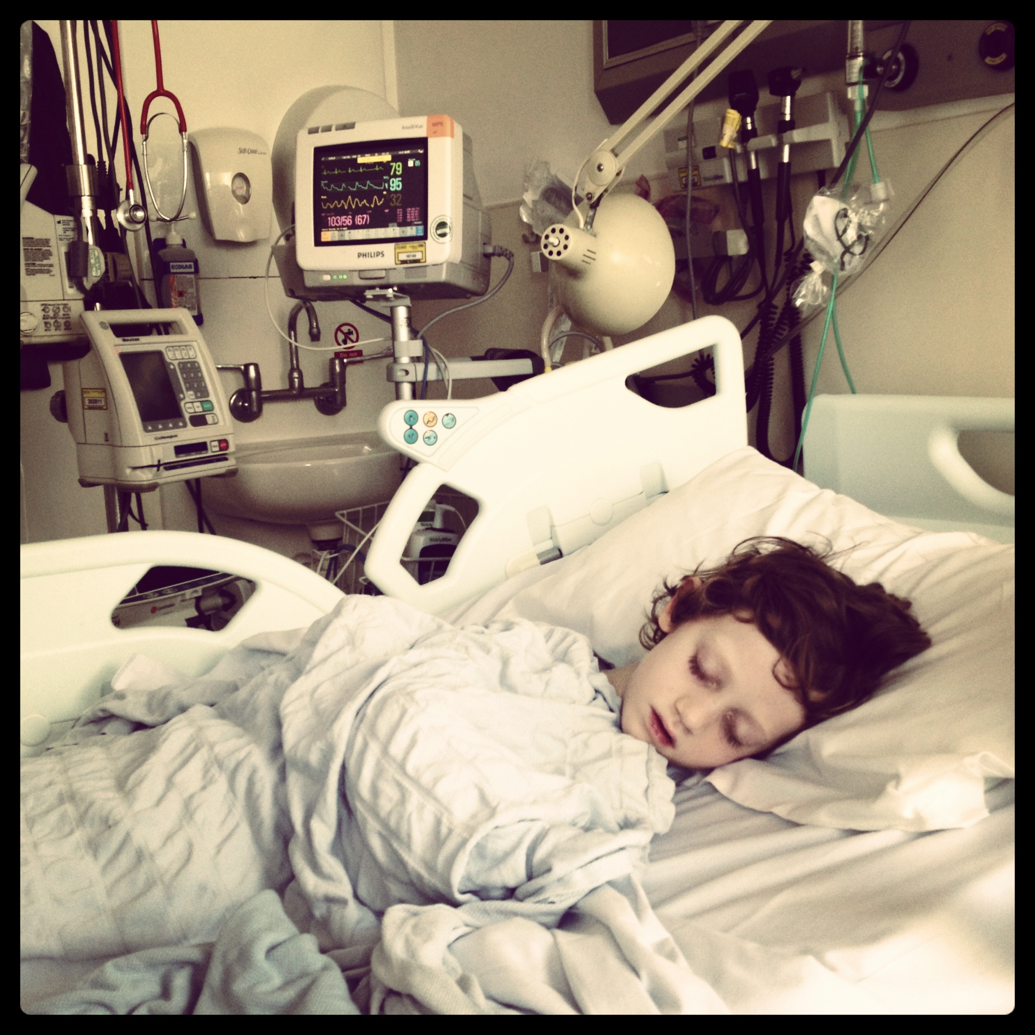 Small and skinny and sweaty and so tired. We stayed with him alternate nights, dispatching the kids to school and various friends, and we waited for him to get better. The doctors were trying very hard to identify what was wrong with him, and came up with viral meningitis and encephalitis, possibly caused by a dormant glandular fever or even (but not likely) TB. By the fifth day, he was ok to go home.