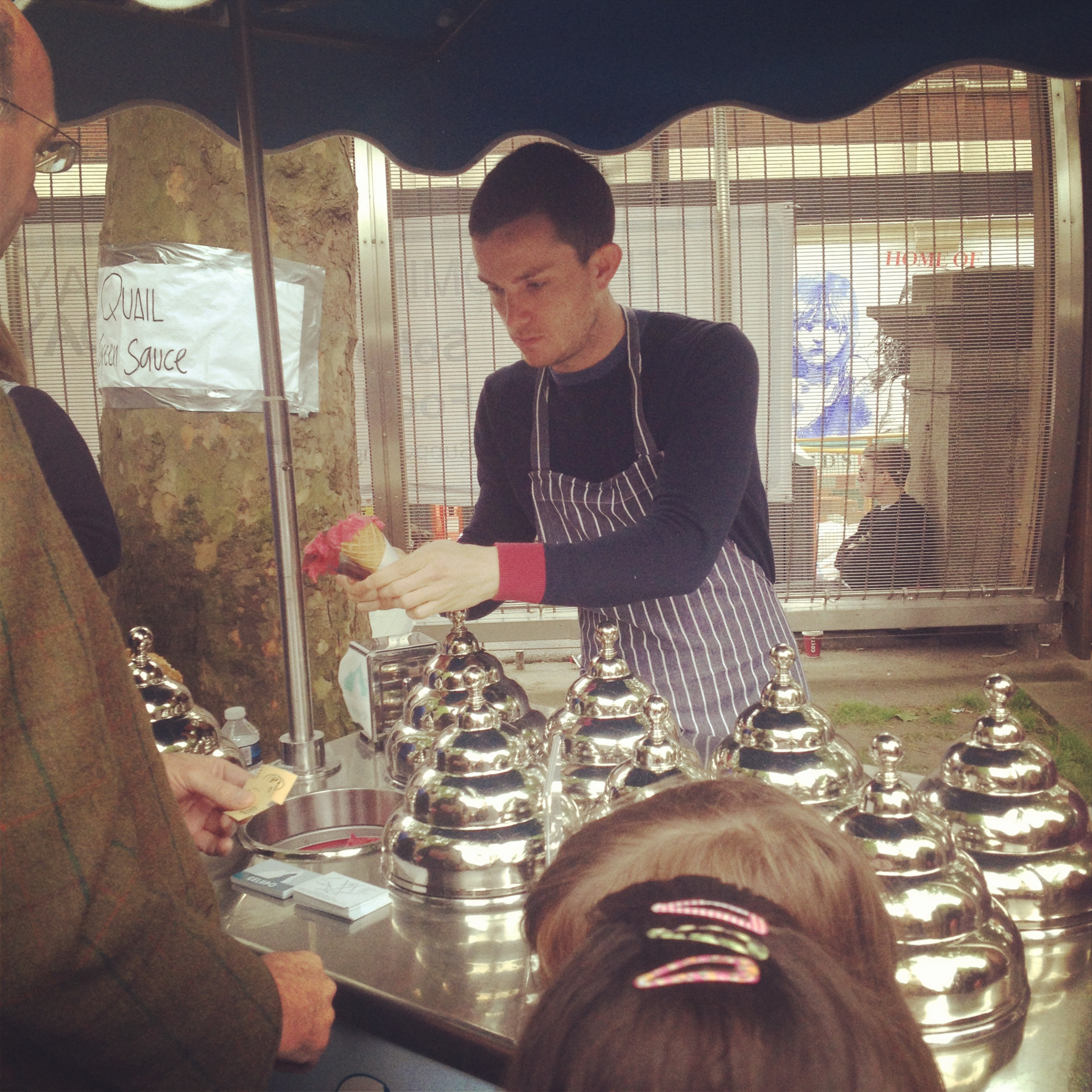 Here’s the Brindisa stall, with the man very respectfully shaving aged parma ham while the food-savvy kids looked on: