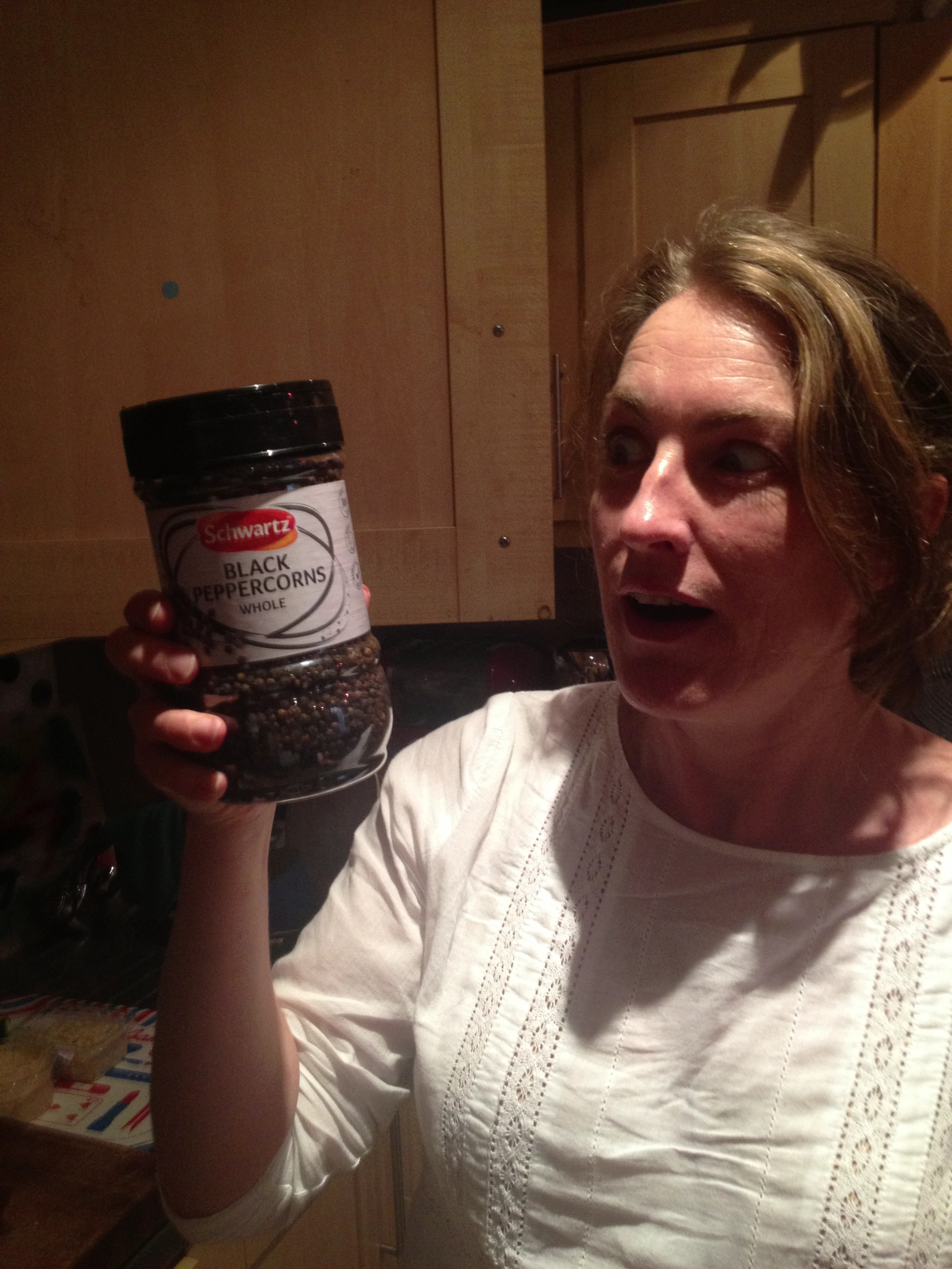 And he really wanted to know if I was pleased. And so I just carried on with my mushrooms, and then went to clean up the poo, with a kind of neutral-face. Because, Dear Reader, I don’t think our flat needs more stuff in it, even if bulk-buying may make some economic sense. I DON’T CARE ABOUT THAT. I want my cupboards back, and my fridge shelves back, and those peppercorns will still be lurking in our cupboard in two years time. And as for the gherkins, as we currently do not own a Jewish deli, so I can’t see rapid consumption of them, either. As for that freakish piece of salmon, well, you know that fish and fish things revolt me to my very core, but you may not know that the last two bits of Heston Blumenthal’s salmon has gotten stinky in the fridge because M forgot to eat them.