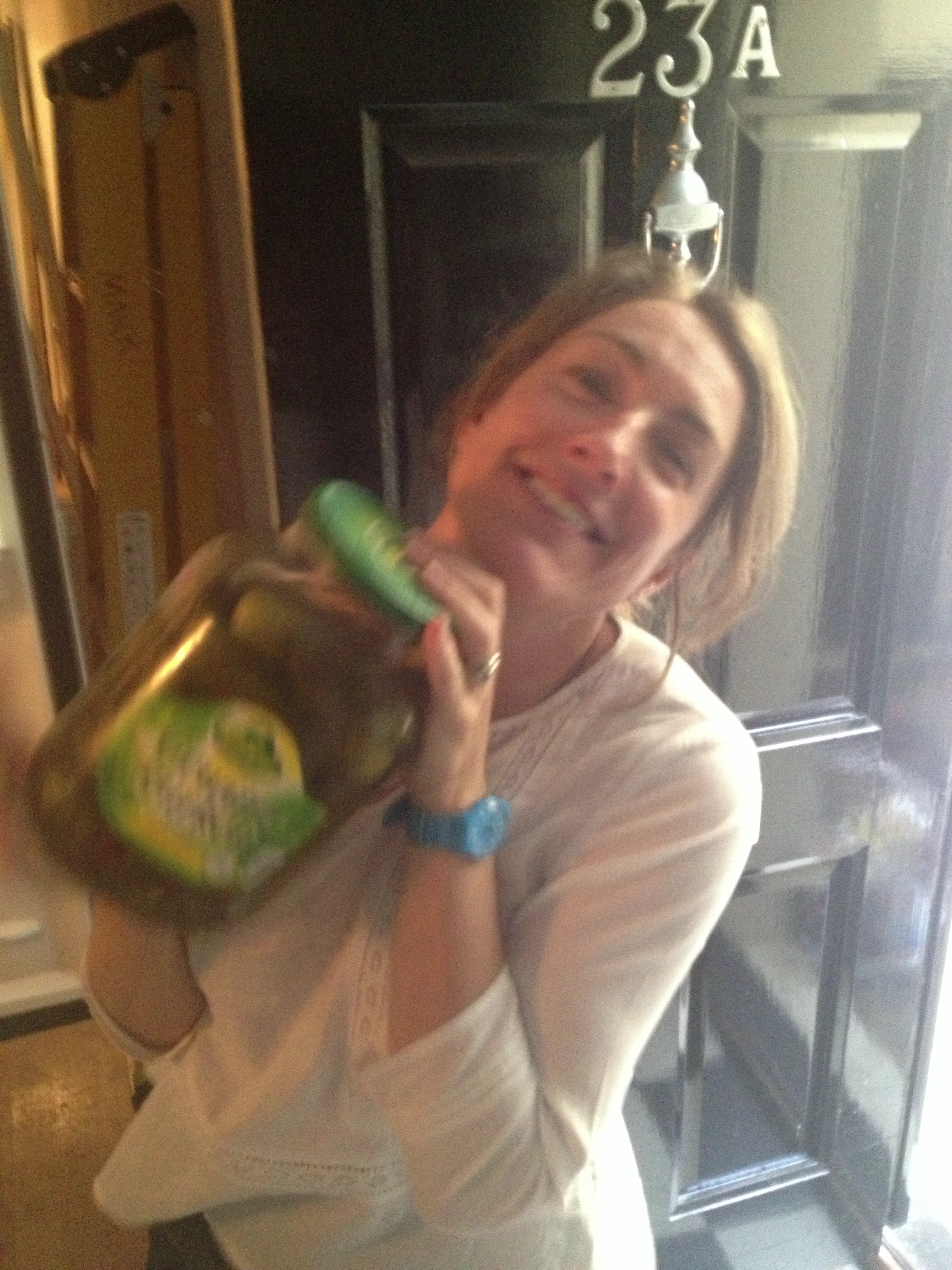 (Thanks to my lovely assistant Sue, who helped out with my photos. I am too pregnant to lift that jar of gherkins, obvs. And, for the record, she agrees that the cost-cutting benefits of buying in bulk do not outweigh the awfulness of being donked on the head every time you open an overstuffed shelf in a two-bedroom flat currently housing four kids, two adults, a dog, nearly another baby, and too many handbags.)