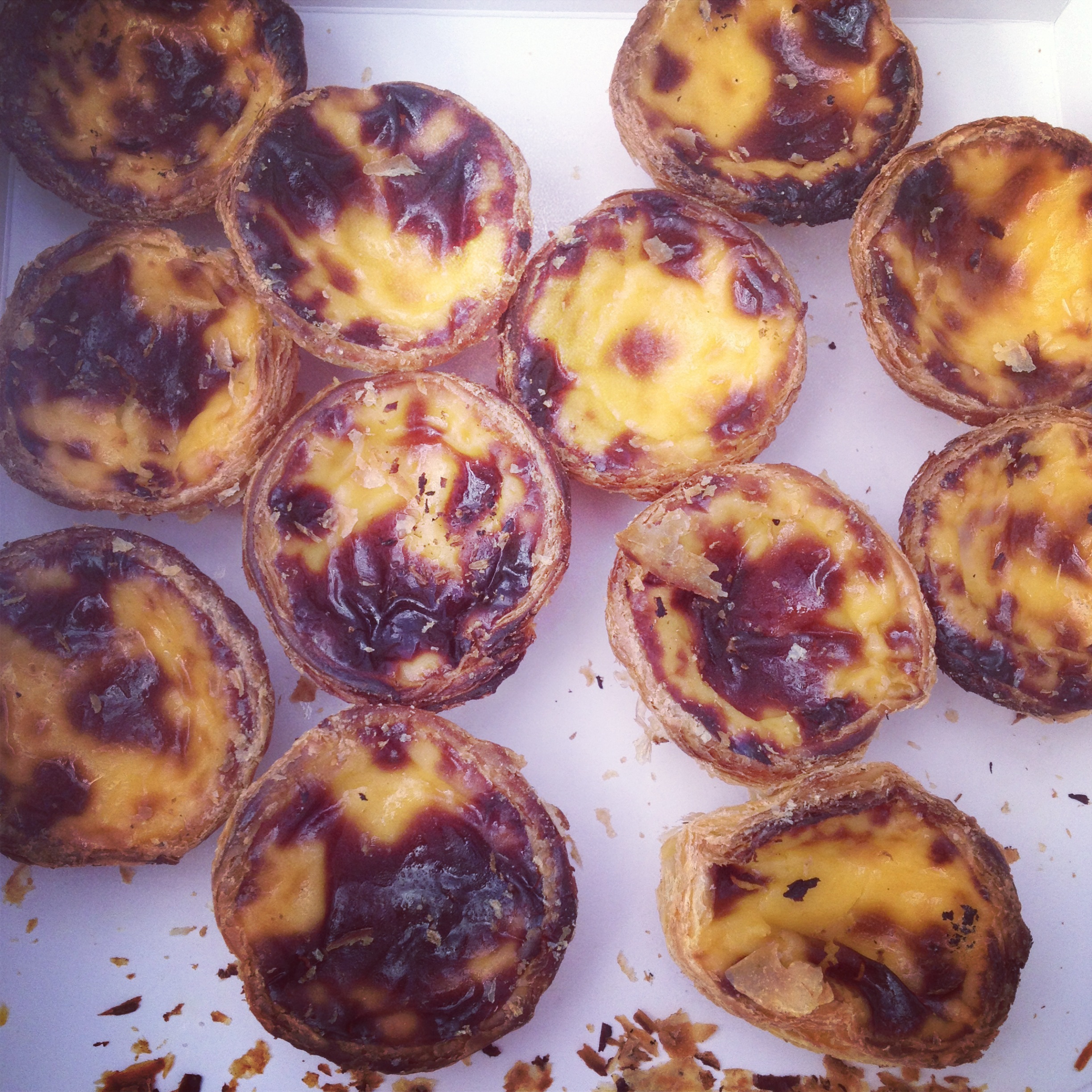 Here are pasteis de nata from the Lisboa Patisserie on Golborne Road – a kind of thick, lemony custard tart from Lisbon. These are extraordinary. We bought 20, ate them fast, then returned to buy another 22.