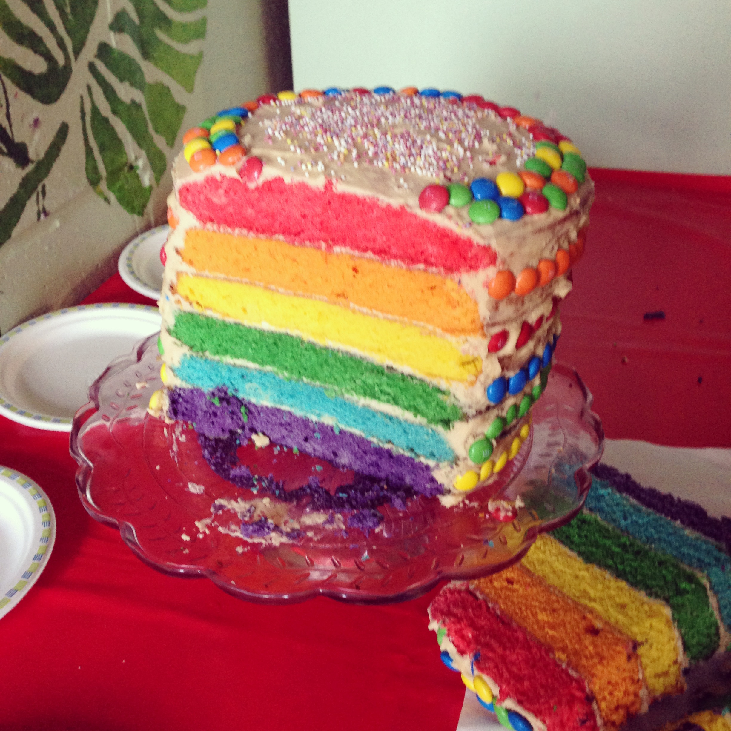 And it was birthday cake season again, with two kids turning nine and four in a week. Here is the Rainbow Cake Of Joy:
