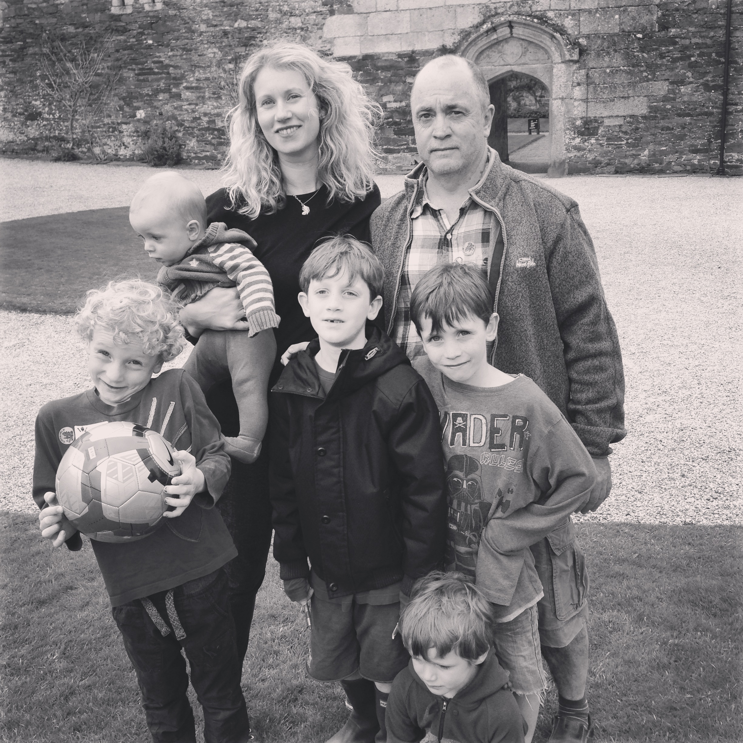 And the rarest thing ever – the first photo of us all. Here we are, me with enormous hair, the others in varying degrees of enthusiasm, at the gorgeous tudor house at Cotehele, ALL TOGETHER!