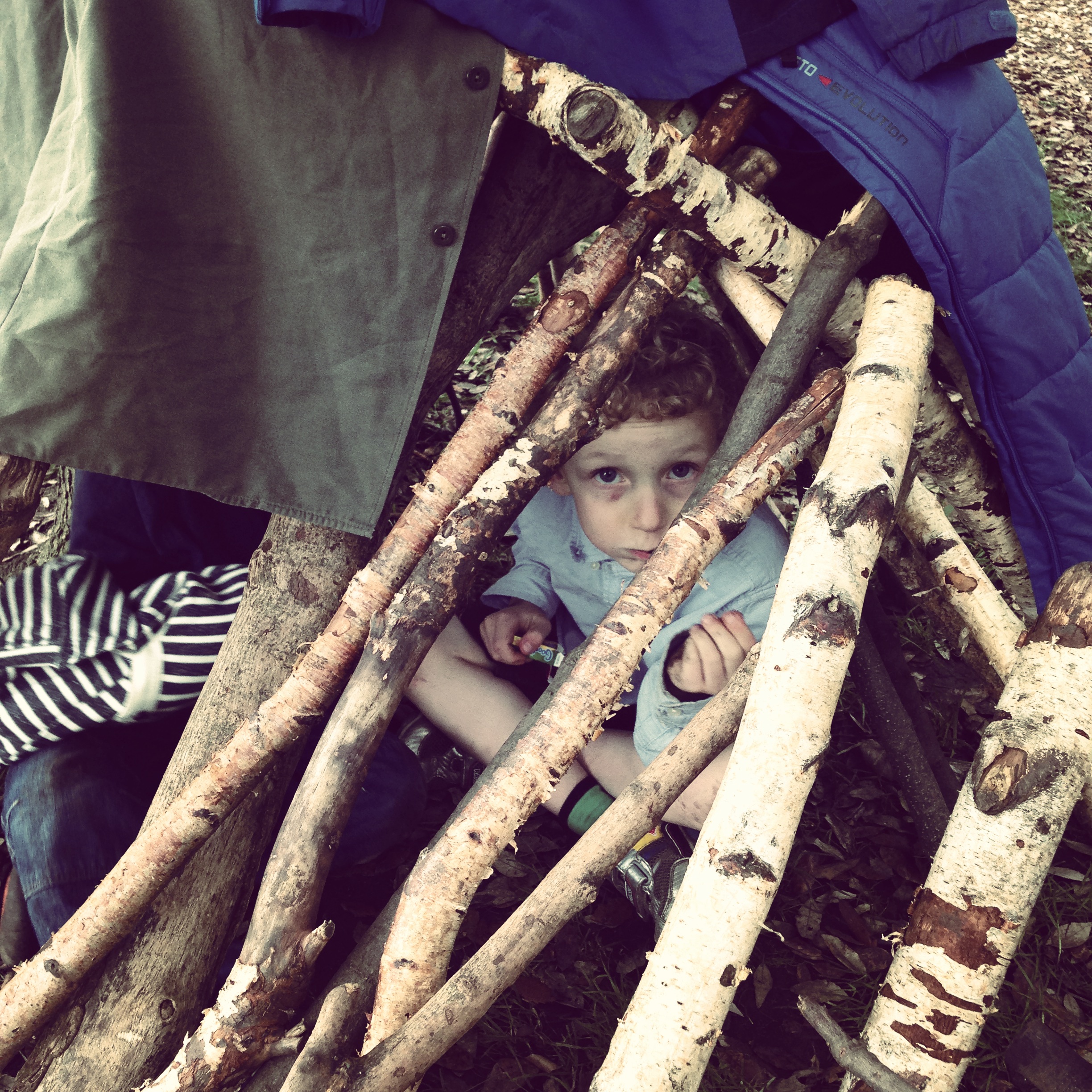 We were at Ham House building dens. Here is Casper in the den. You can barely see him without his face on:
