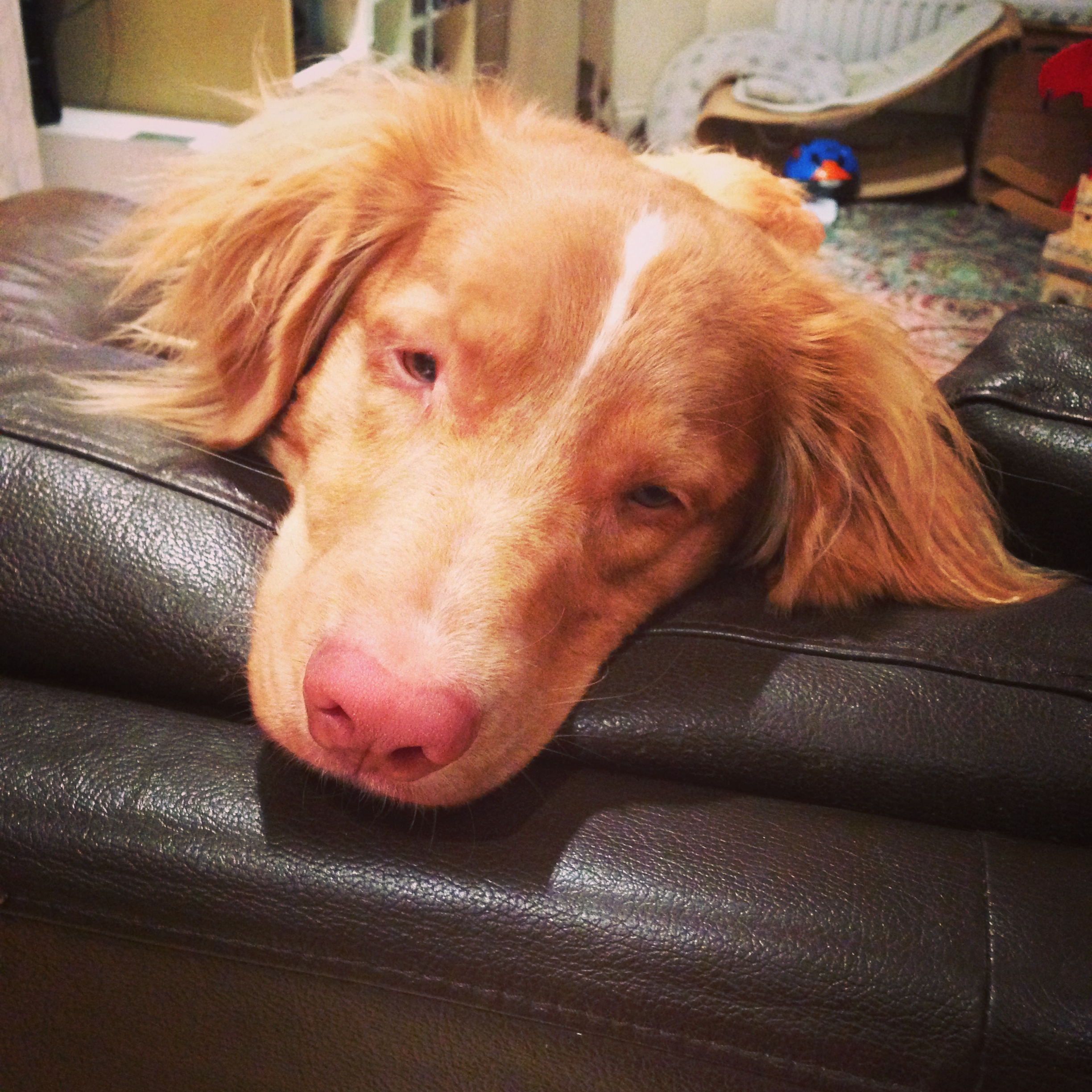 Here he is, the night before the poo-incident, looking reflective, and a tiny bit sad. I think he may have been wrestling with his dog-demons, and perhaps coming to terms with his inappropriate binge-eating and lack of self-control.