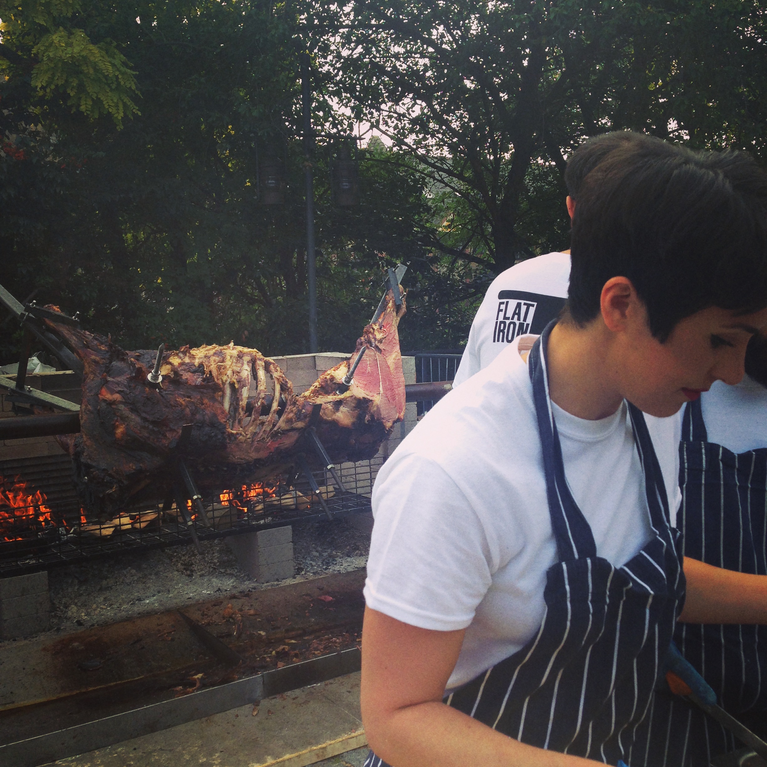 Here is a photo of a roasting ox at Meatopia, a festival of meat food we went to without the children. We ate so much meat, and quaffed a few rum lemonade-y drinks and became giddy and sweaty with the lack of small people baggage and animal fat.