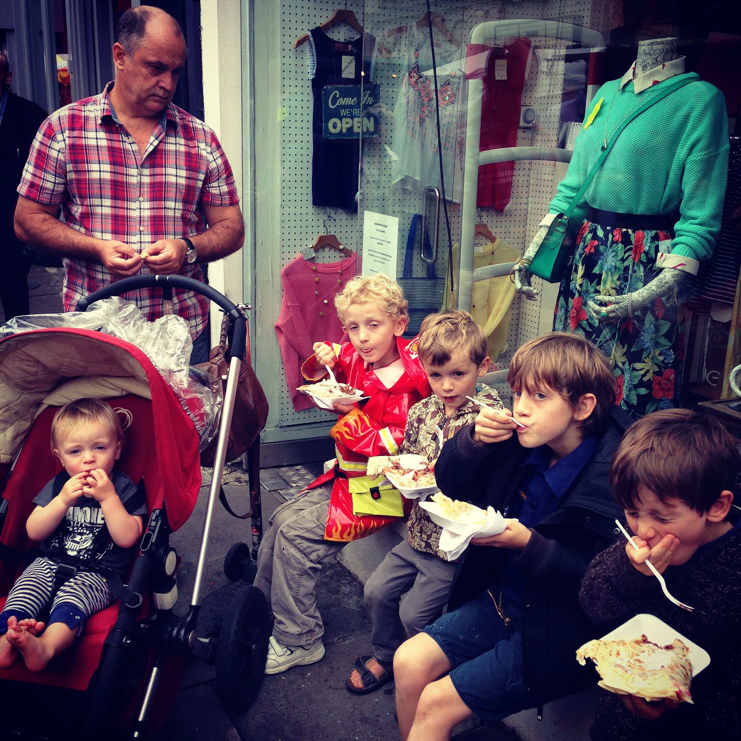 And last weekend, a little wander down to Portobello Road, to eat crepes and hotdogs from the Germans. Noah struggled a little with the boiling nutella, apparently.