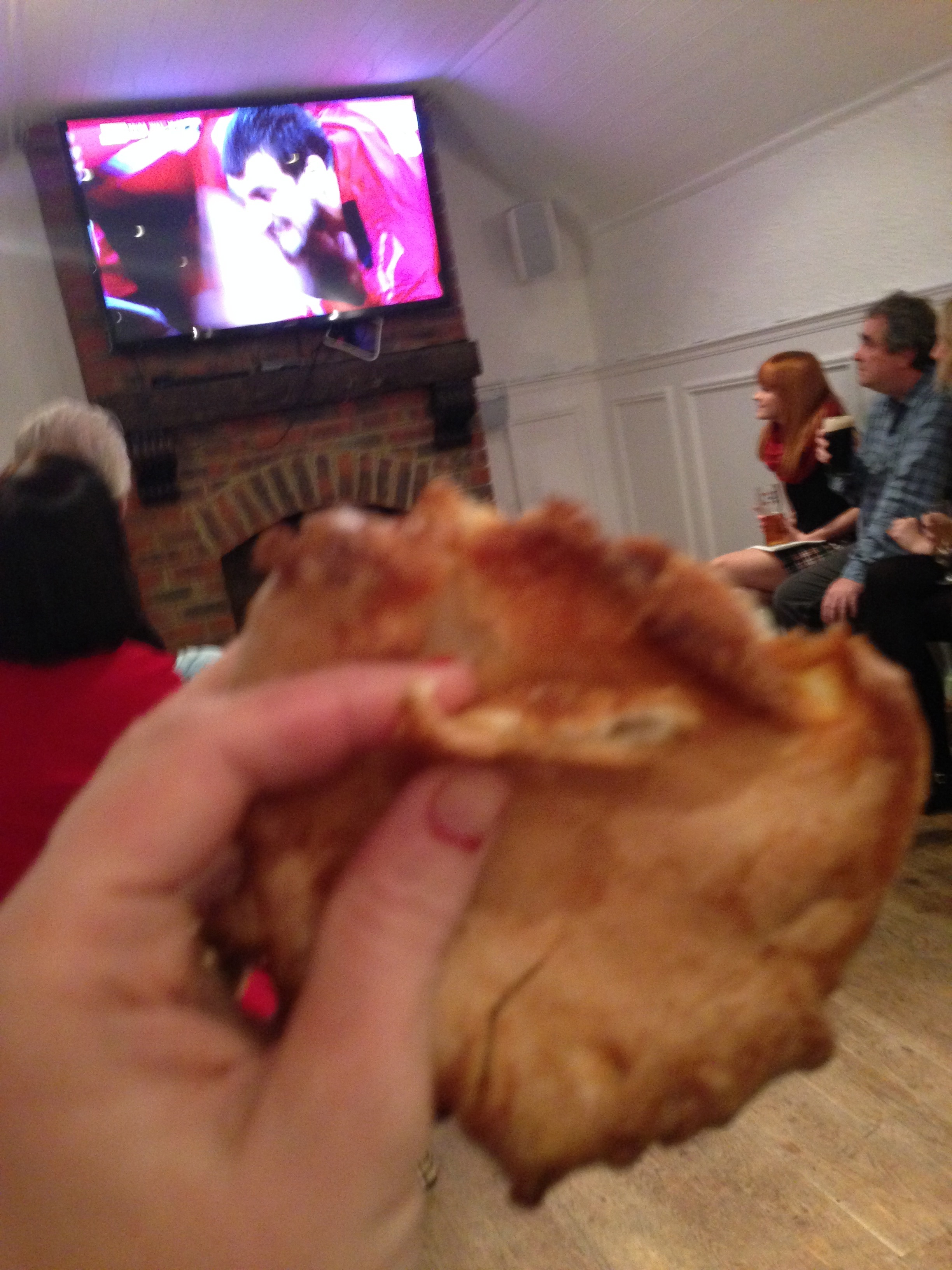 There has been a lot of rugby on the weekends over the last month, and that has made for many cranky parental fights and small children getting in between the tv and the couch and much shouting and solo parent outings and much, much resentment. It all culminated in a game last weekend at one of the many farewells we have been attending, where the early part of the evening was spent in a pub, in a room, with all eyes on the screen. I cannot even fake it. I was all about the prosecco and the food, refilling glass and plate with alarming speed. I don’ t think I spoke to anyone, not that anyone would have been able to tear their eyes away from the match. Here is me, many glasses down, many yorkshire puddings down, playing with my phone and singing softly to myself, making shapes with the food with my teeth, crying a tiny bit and wondering if I should show my bruise at half time: