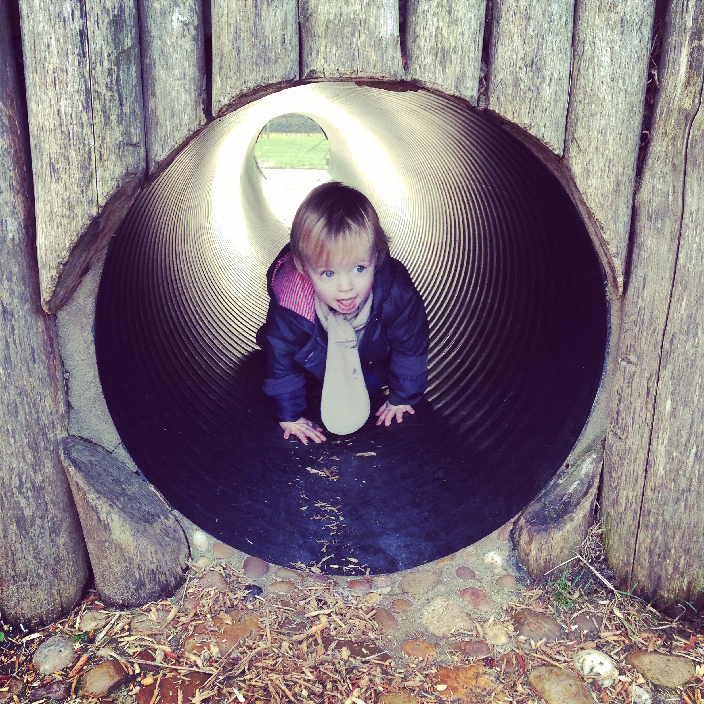 And here is Otis, climbing through a tunnel, carrying off a scarf expertly and nonchalantly. I think we can all learn something from that guy.