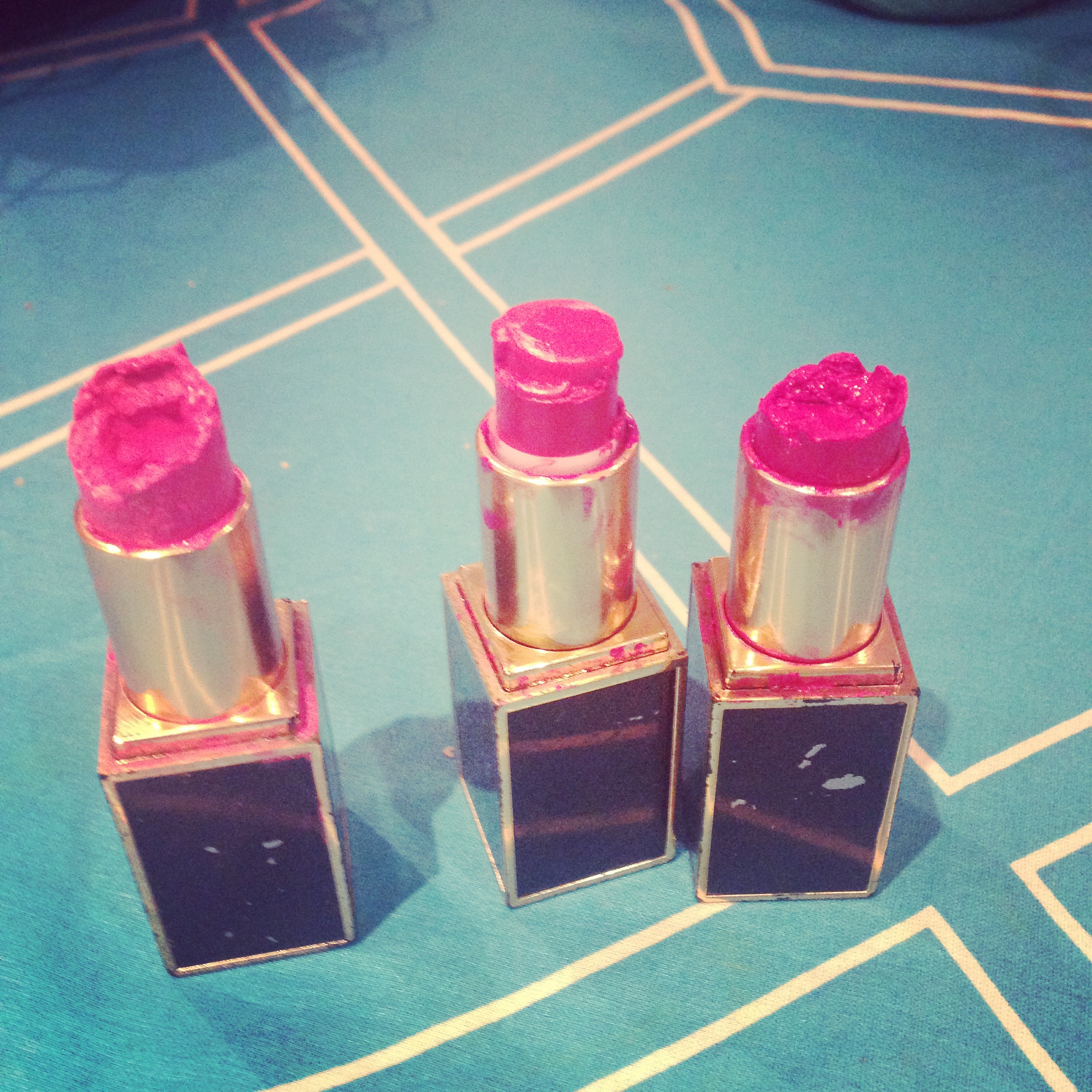 The baby has found my lipsticks, and he gouges them out with his fat fingers when ever he is let loose into the bathroom or anywhere near my bag. He smashed up a Barry M one and smeared it all over the toilet cistern, but I didn’t mind that, because they cost about £1. The Tom Fords are obviously a different story, and though it has been happening to me for years, it doesn’t feel any less painful when the newest and cutest member of the family learns the joy of soft highly-pigmented vanilla-scented tubes of overindulgence. Nothing is sacred.