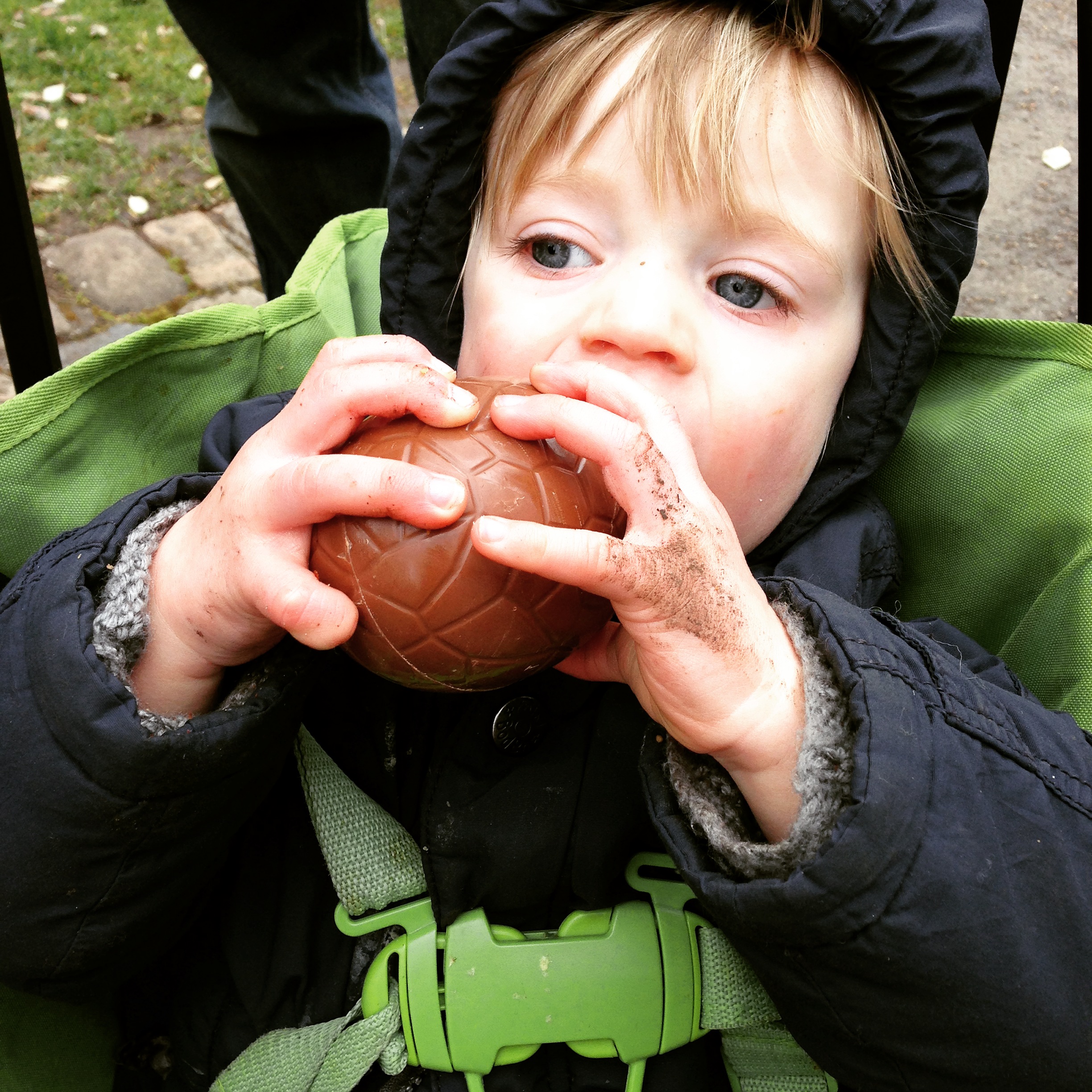 Here he is, the Bad Baby, stuffing a massive Easter egg into his mouth with no sense of shame.