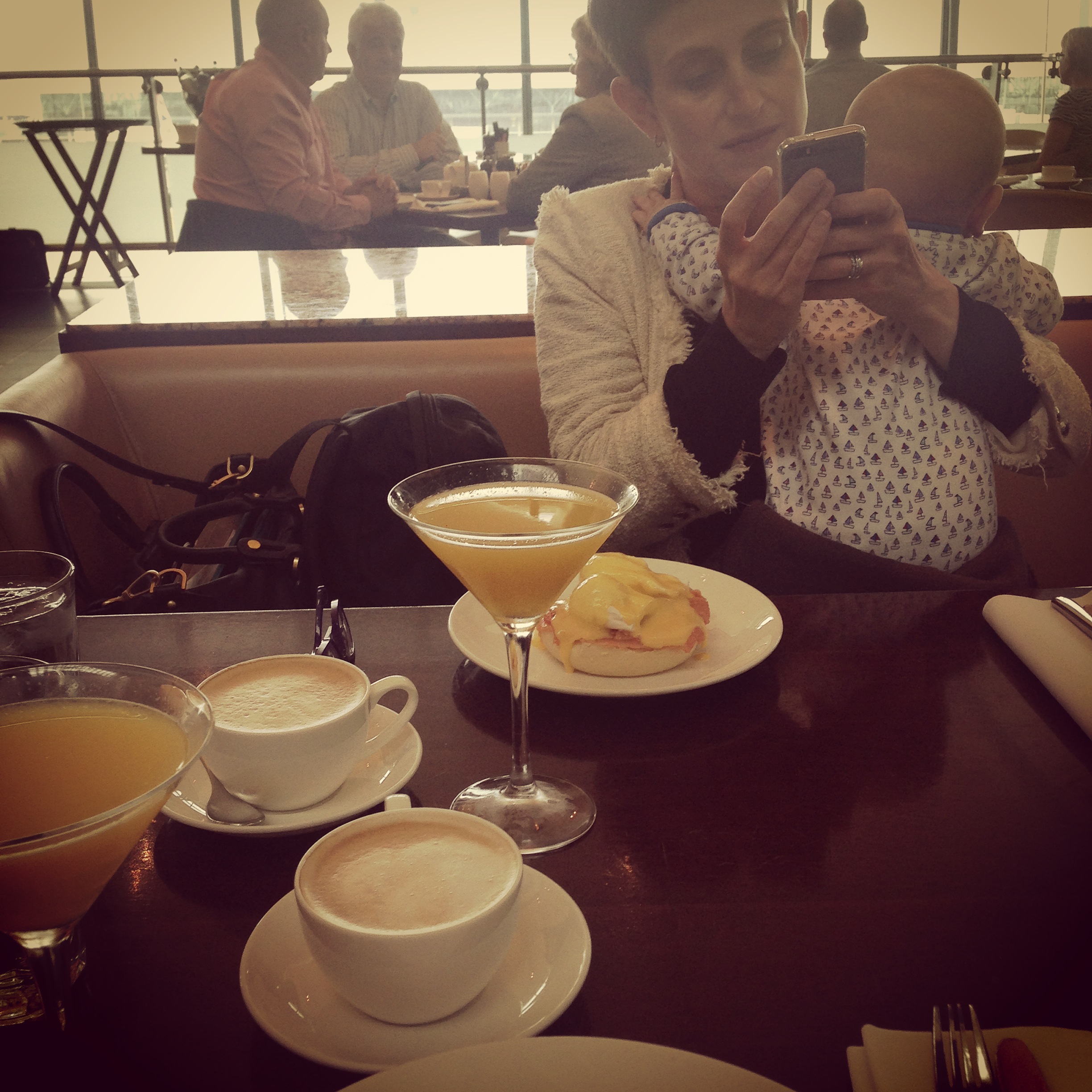 And here we are in Terminal 5, right before we left, drinking a breakfast martini at Gordon Ramey’s Plane Food, which turned out to be the alcoholic highlight of the whole trip. C is channelling Sarah Jessica Parker in that movie about career women with kids, while I am just playing with my phone – recurrent theme number one.