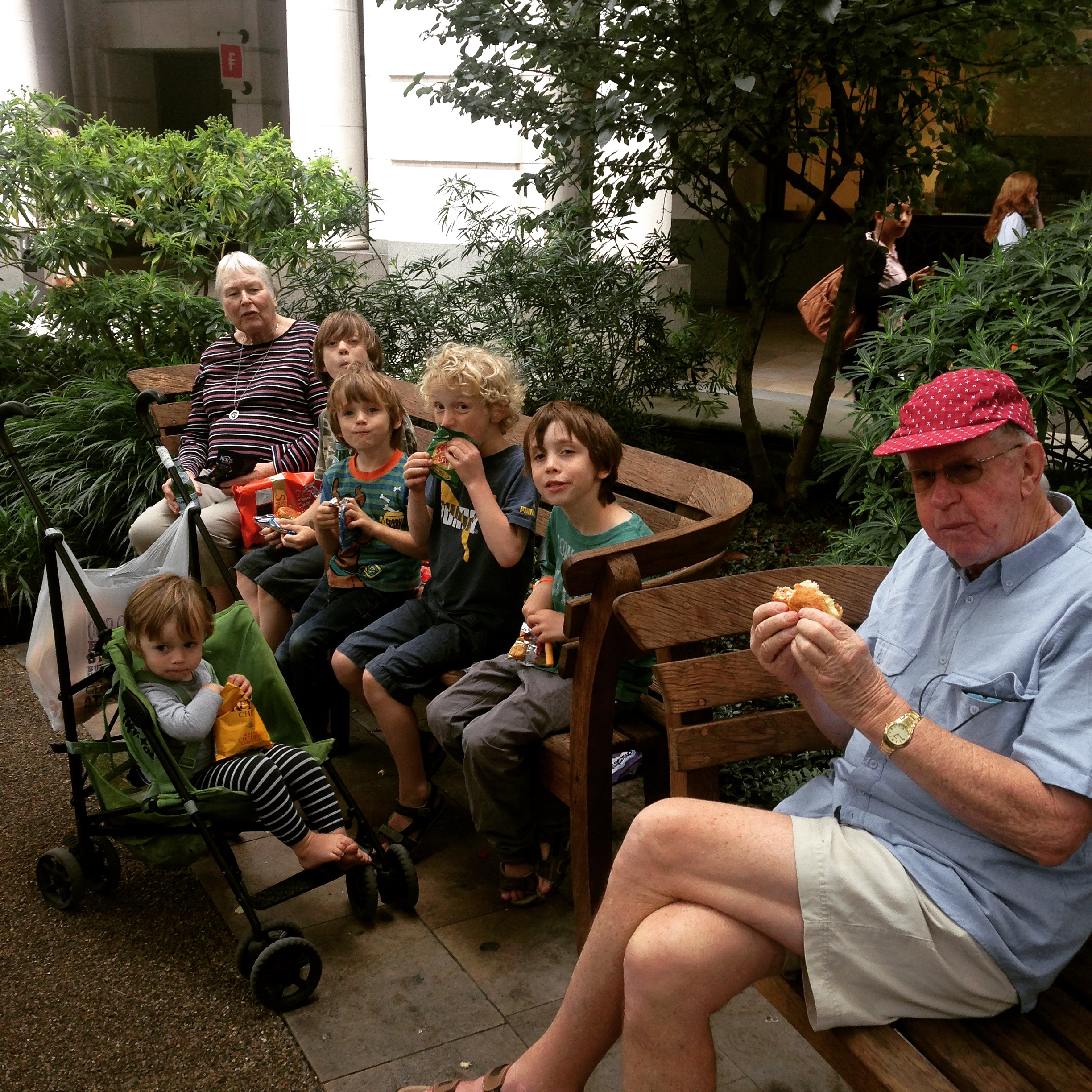 I’m glad to have gotten that little nugget of questionable mental tomfoolery out of the way. There are very good things to be grateful for, things that should really be overshadowing my odd infant-neediness. Mum and dad are here to see the existing, real children and to help me over the unrelenting holidays. Here we are, doing London things, mostly involving lunch, and only getting told off from the managers of a park in one of the photos for garden-compromising hide and seeking: