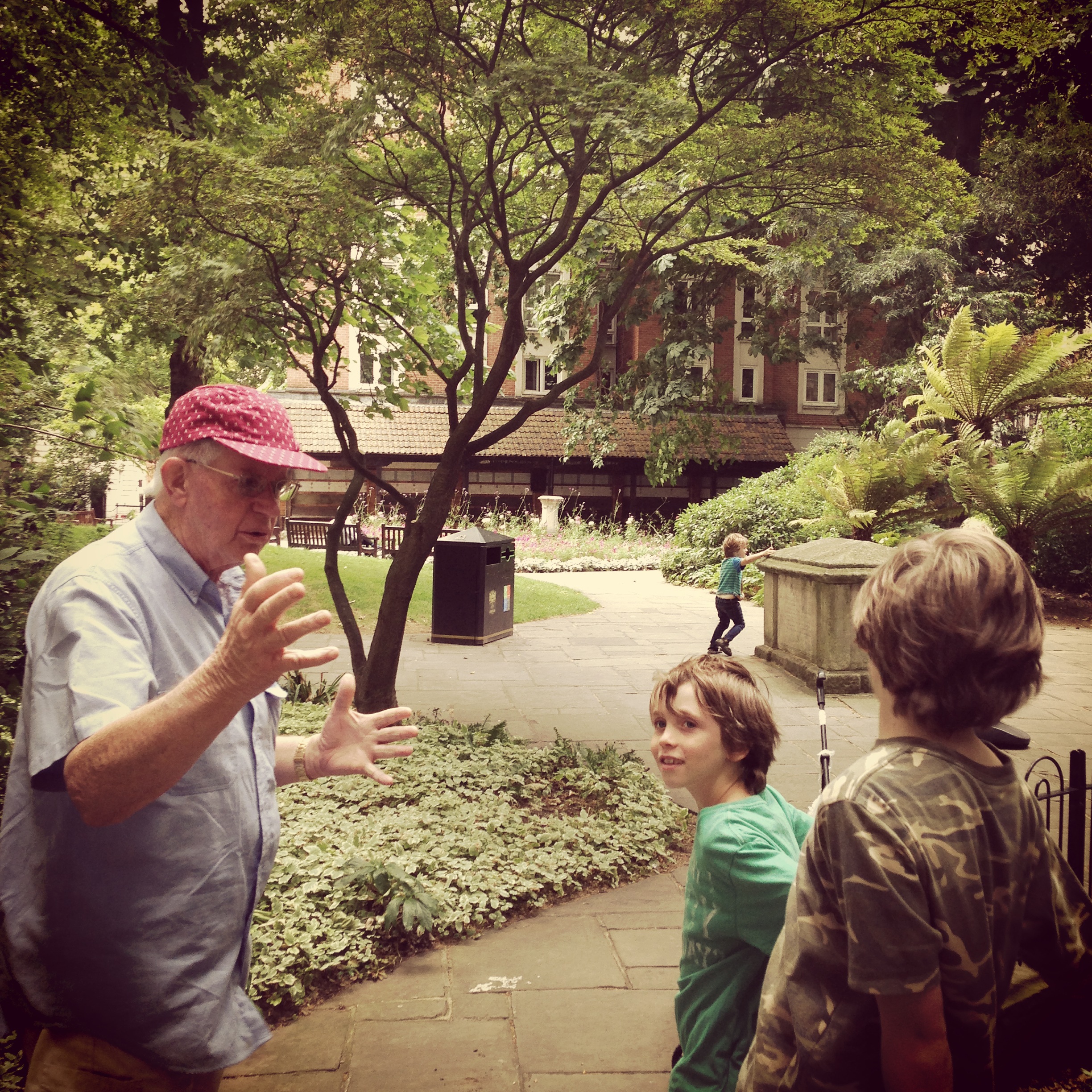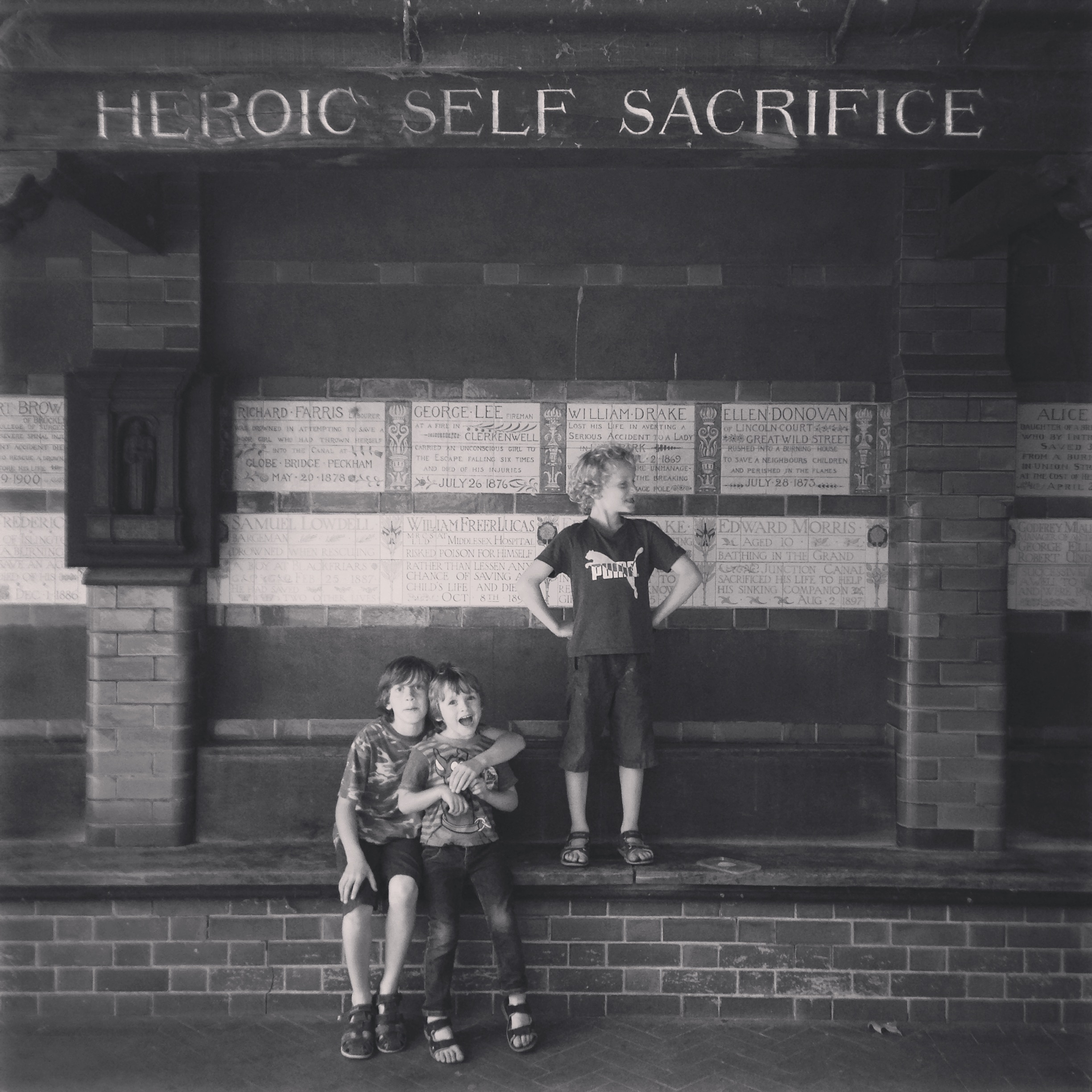And a trip to Postman’s Park where it looked like we were having fun, until we noticed they were breaking into the goldfish pond and stealing the coins at the bottom:
