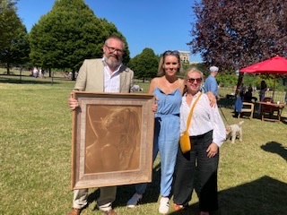 Here’s a funny story. The producers at Antiques Roadshow tried to get Helen Mirren to come along to see the portrait of her in her nipply Bardot-esque youth, but she wasn’t in the country and so we had no surprises awaiting us. BUT, while we were nattering away on camera, a woman passed us and the painting which she recognised because she had been the artist’s girlfriend for 10 whole years. Oh yes. And so she told us all about Count Nicholas Egon and his mad portrait-making, his nice face and his way of paying people with his work. Here they are, reunited all, in the tiniest photograph known to humankind: