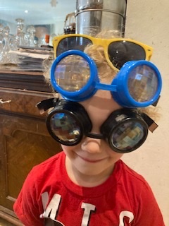 And finally, because it is sunny outside and I have wasted too much time trying and failing to make Charlotte and the Young Helen portrait download in a bigger size, here’s your last shot. The baby, no longer a baby, in his sunglasses collection: