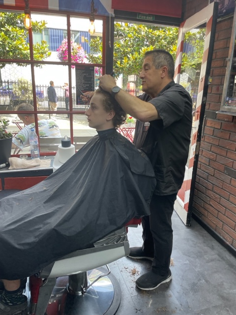 Here is my lovely huge long-legged darling Casper not getting a mullet, but more a soft reshape of his glorious curly bonce: