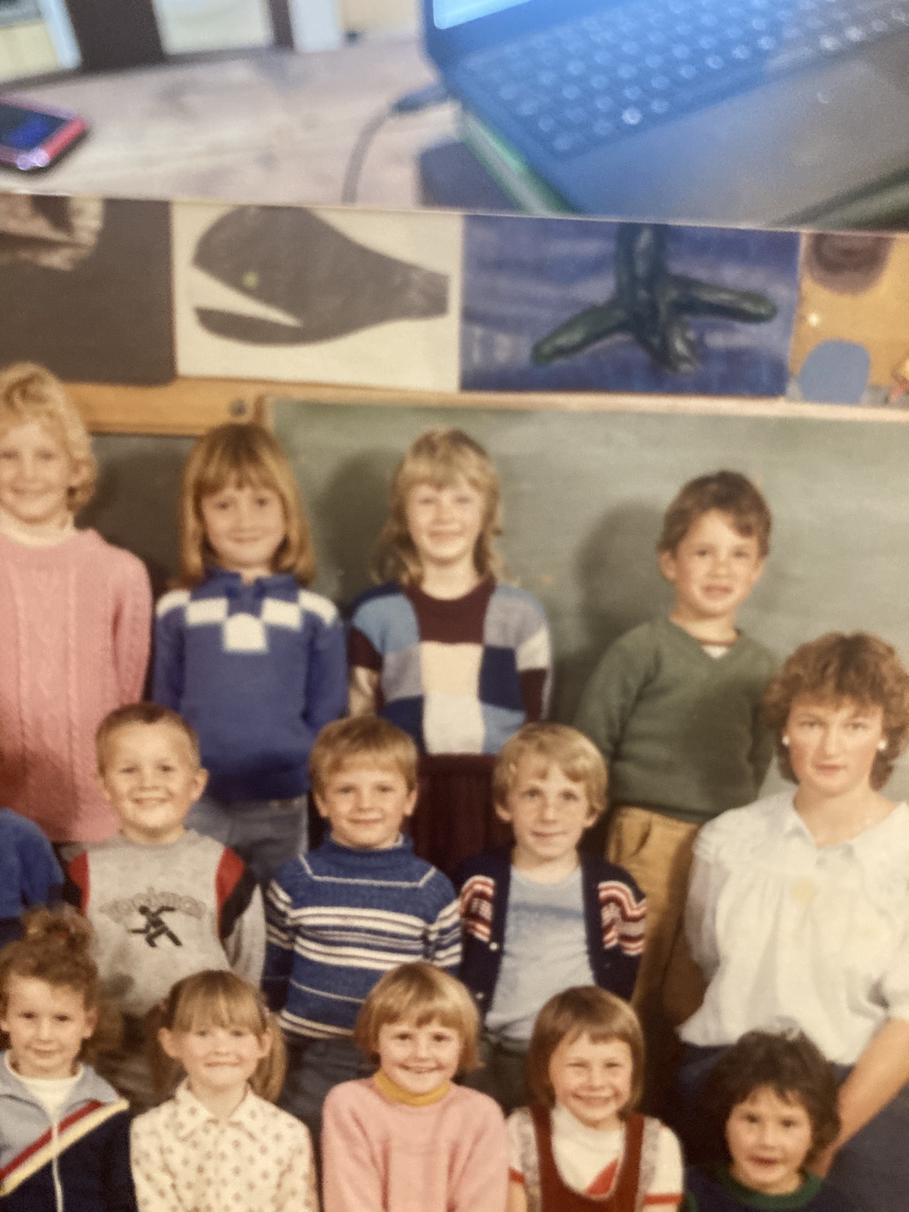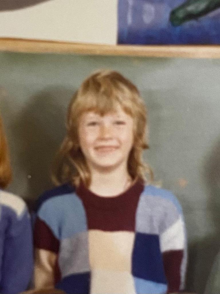 My school photograph dug out for a work thing. Hand knitted mum jumper (thanks Jude) and really quite impressively ratty and mullety hair: