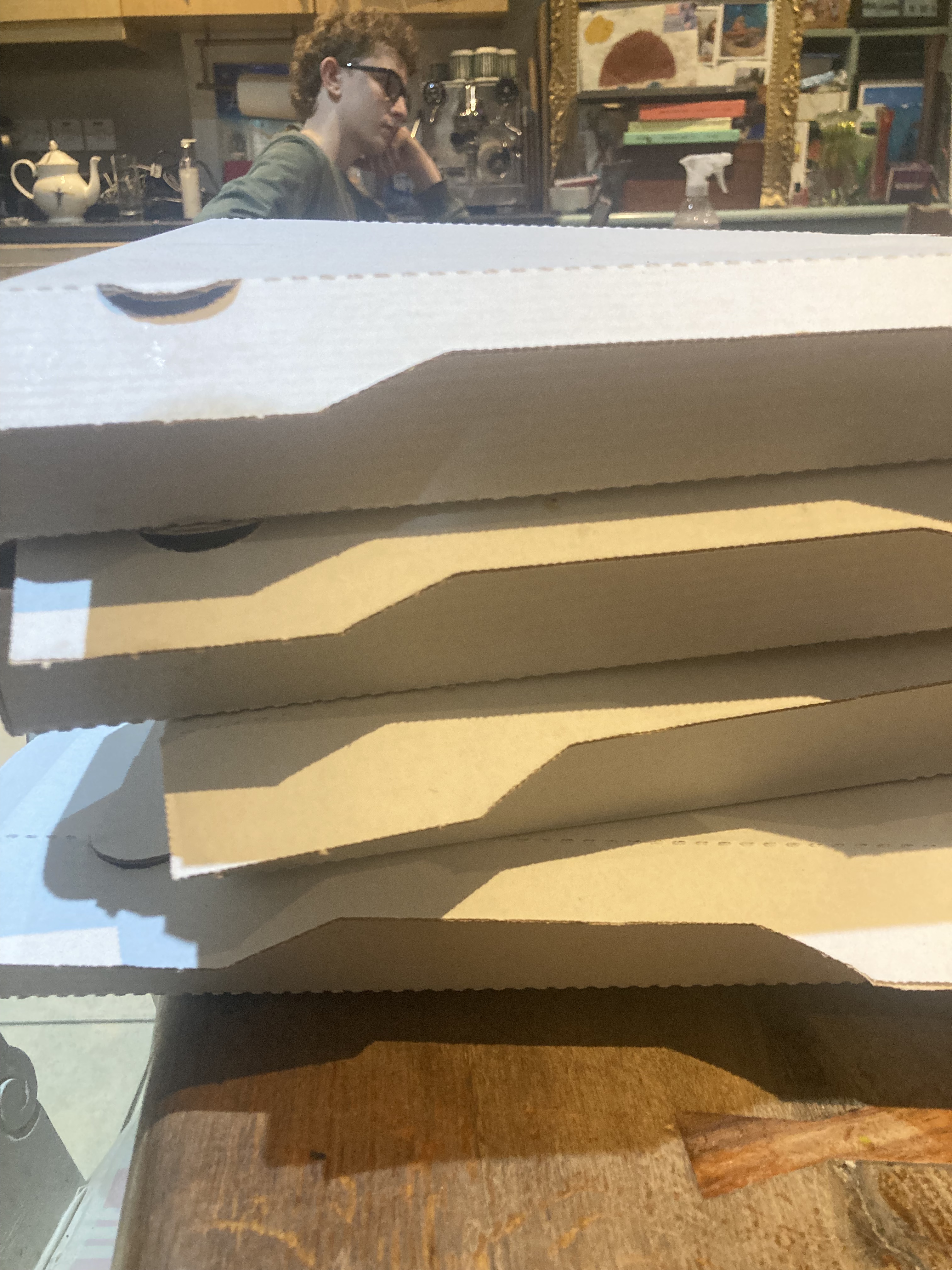 Pizza-gate. I have started being brilliant on Fridays by roasting a yoghurt and garlic-marinated whole lamb shoulder in the afternoon, or by tray baking chicken thighs, chorizo, red cabbage and Bold Bean Co chickpeas so that by Friday at 5, when everyone is hungry and I am half a bottle of cremant down, there is food ready for the hungry hordes and I don’t have to get horribly expensive takeaways. But this Friday, on the back of an impossibly busy December, I relented and got pizza delivered. But the bastards only delivered four, not five, and they refused to give me a refund. So I got all het up about it and posted about it on Instagram (such a fighter) and called them and left messages and generally spent way too much of my emotional energy on it, and then yesterday I got an email from Deliveroo asking for photographic evidence of the problem. Which, translated, means a photograph demonstrating the LACK OF A PIZZA. The absence of a pizza. The pizza-shaped hole where a pizza should have been. So I photographed the four boxes and pointed out in a very pass-ag fashion that photographing the absence of a thing was difficult to do and so my recycling pile would have to suffice.